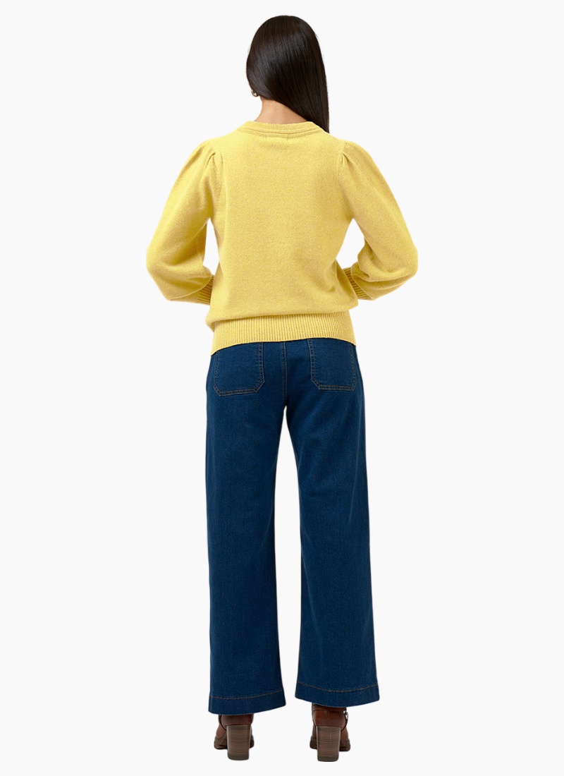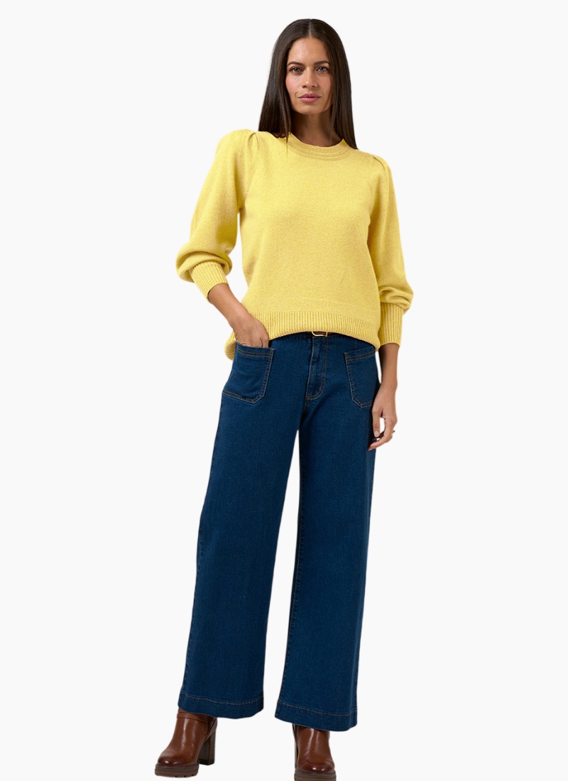 Introducing the Odette Sweater-Lemon from Loobies Story. This softly textured lemon jumper brings a fresh, uplifting touch to everyday dressing.