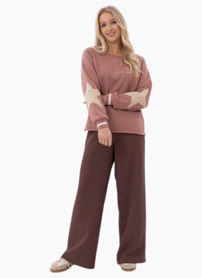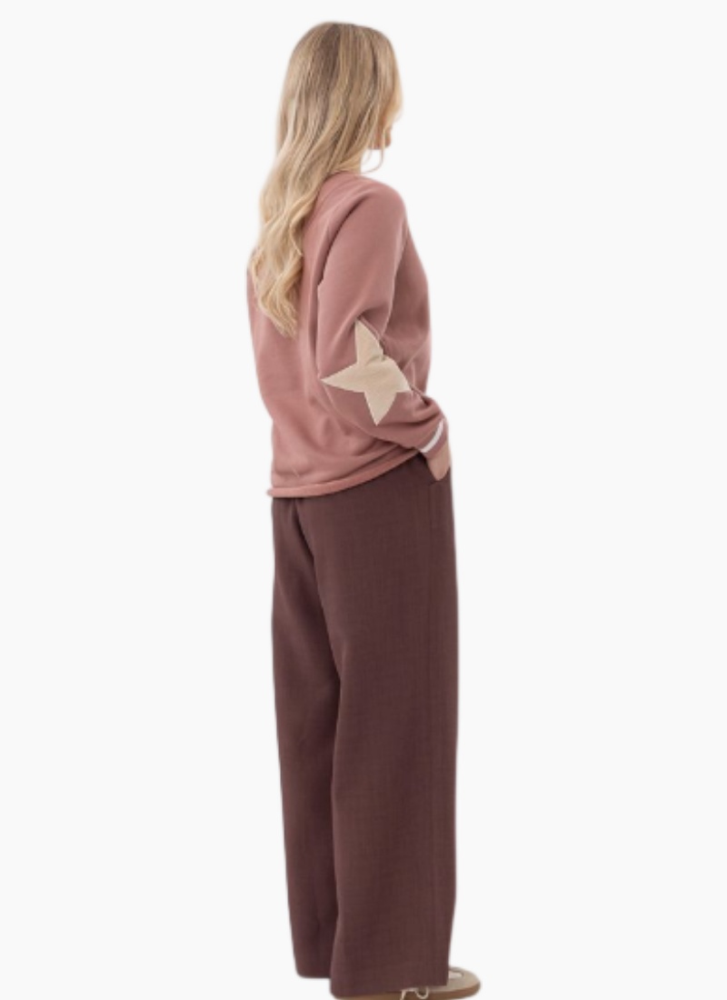 Introducing the ALL STAR SWEATER PINK from MI MOSO. This cosy everyday jumper features a soft dusty pink colour with playful star elbow detailing for a relaxed, stylish look.