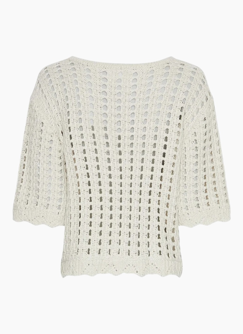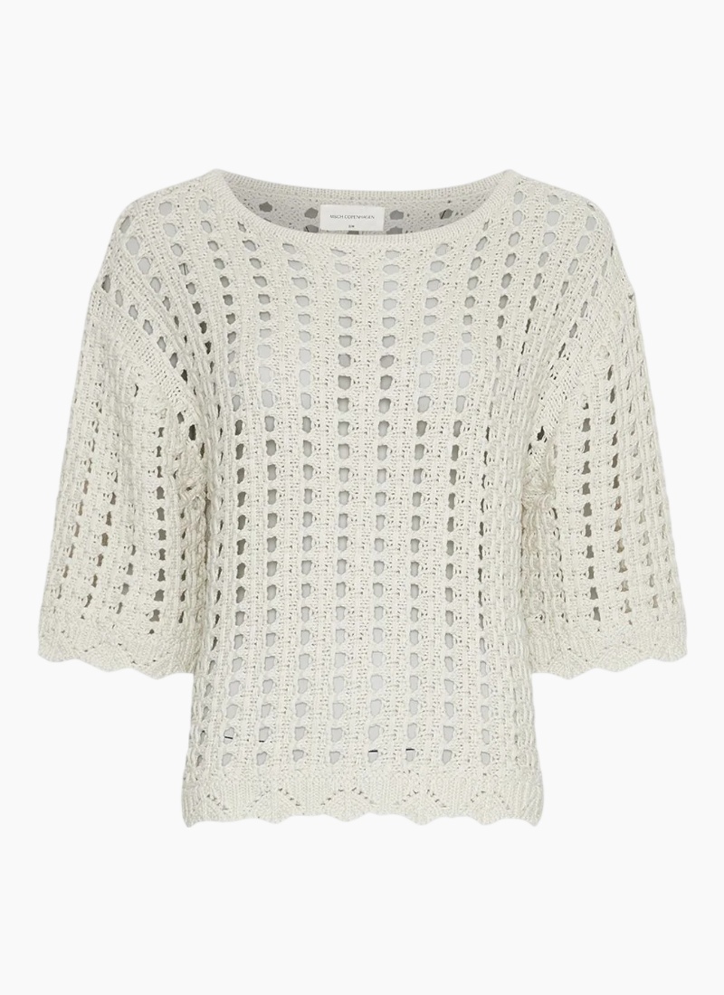 Introducing the MSCH Fairyn 2/4 Pullover-Turtledove from MSCH. This airy, open-knit jumper brings a modern, feminine touch to everyday layers.