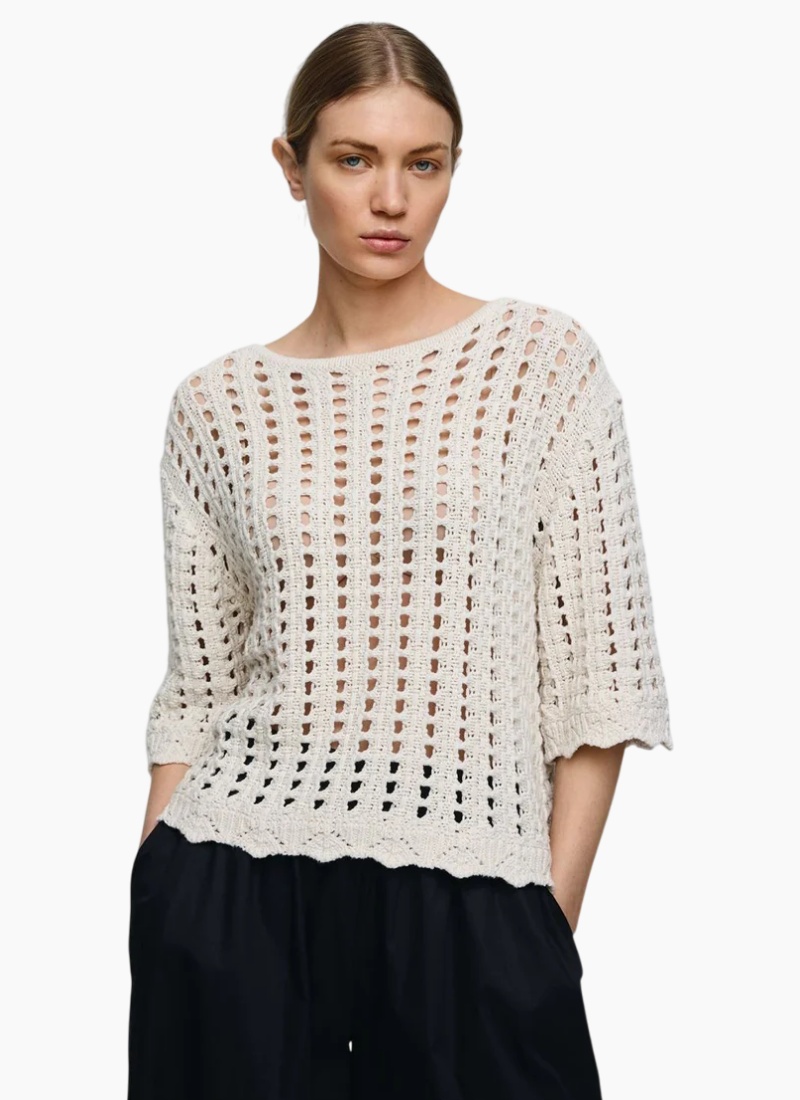 - Scalloped hem and subtle texture add artisanal charm to this versatile jumper, perfect for light layering through the seasons