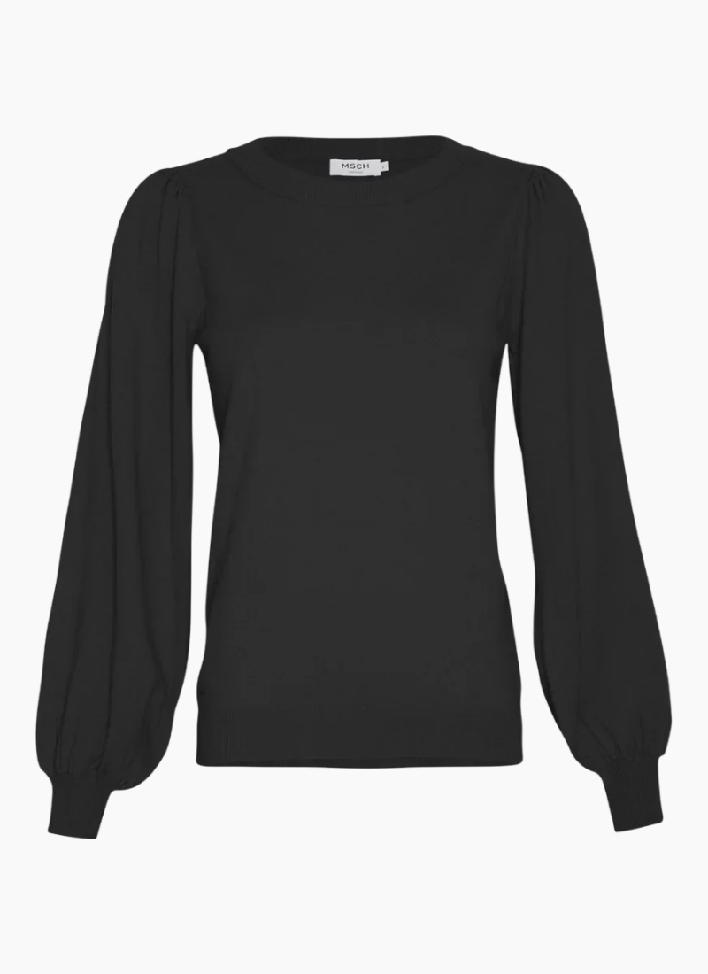Introducing the MSCH Tamana Rachelle Pullover from MSCH. This timeless black jumper pairs refined tailoring with softly gathered balloon sleeves for a modern, feminine silhouette.