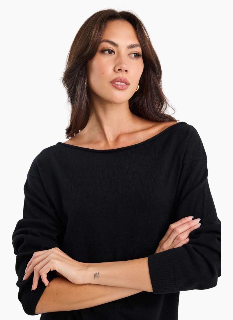 Effortless and feminine, the Reverb Jumper blends clean lines with a softly draped silhouette for everyday wear. Crafted from a breathable cotton-cashmere blend, it feels beautifully soft against the skin while offering lightweight warmth. The wide boat neckline can be styled on or off the shoulder for a subtle statement, while the relaxed fit and long sleeves make it an easy go-to for casual polish. A timeless piece designed for comfort, versatility, and understated style. Features: Wide boat neckline (wear on or off shoulder) Relaxed fit Long sleeves with ribbed cuffs Soft-touch knit Lightweight, breathable feel Fabric & Care: 95% cotton / 5% cashmere Natural fibre blend Soft and gentle on skin Delicate care recommended Size & Fit: Model wears size 8 Model height: 175cm Bust: 75cm / Waist: 56cm / Hips: 86cm Why you’ll love it: Easy to dress up or down Flattering, relaxed silhouette Luxuriously soft with everyday wearability