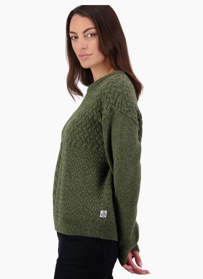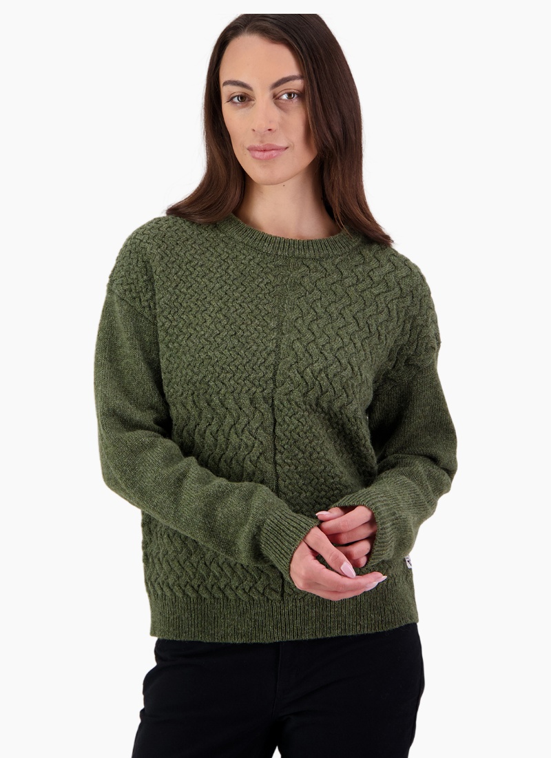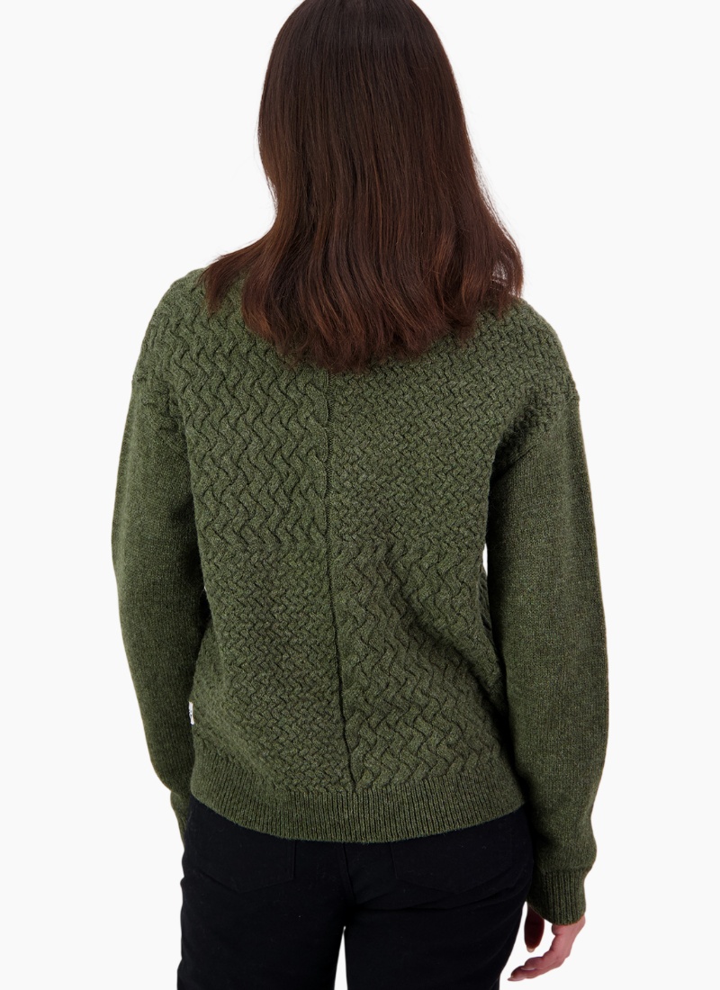 Introducing the Amberley Knit from Swanndri. A timeless wool jumper in olive green that brings cosy texture and effortless New Zealand style to your rotation.