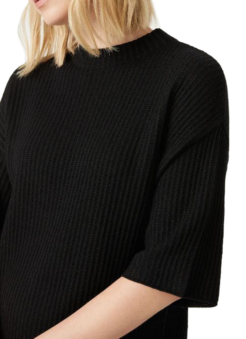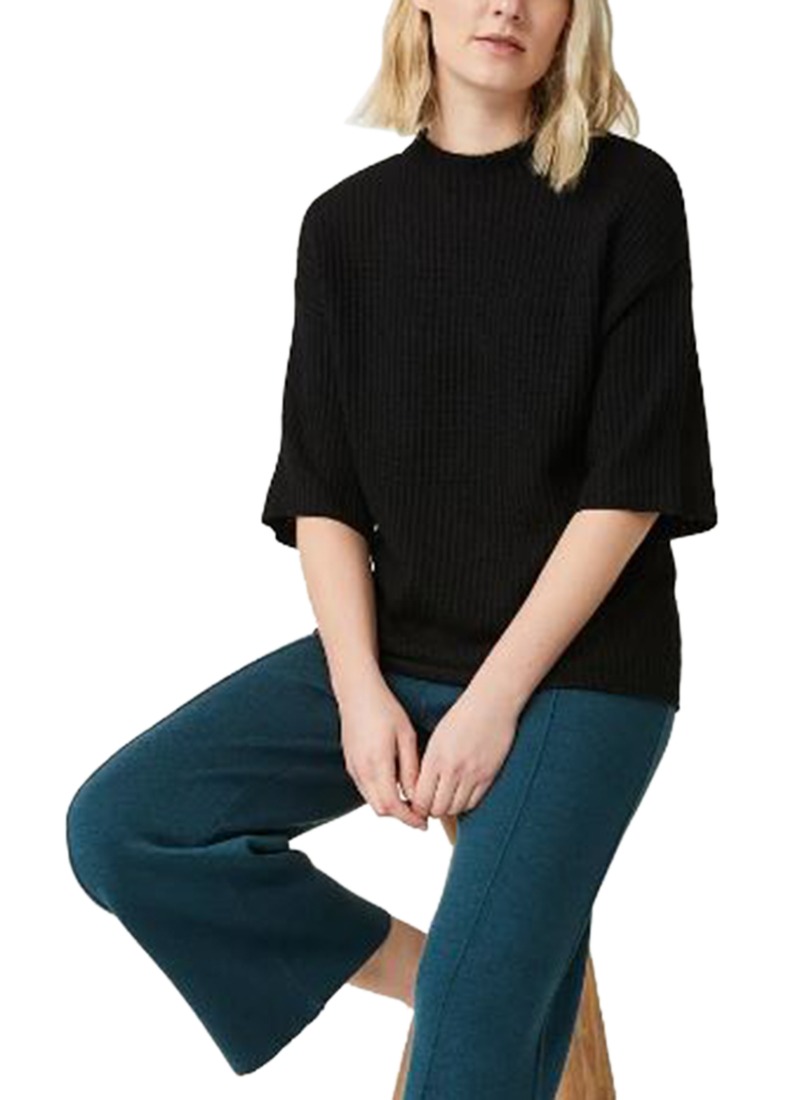 The Mineral knitted top is a fun new style that pairs well with our MERINO-DENIM™ jeans. It features a textured 3D stitch with cropped sleeves and a grown on funnel neck.