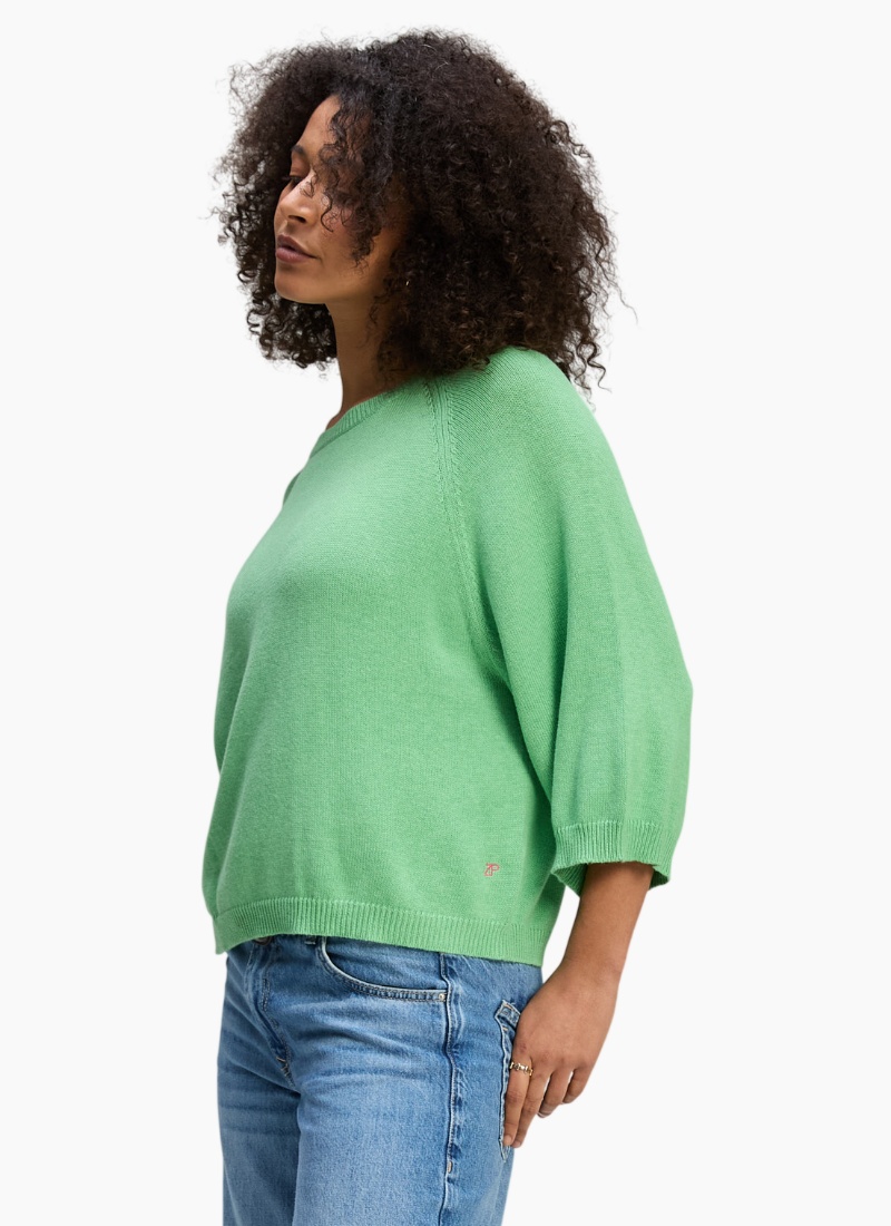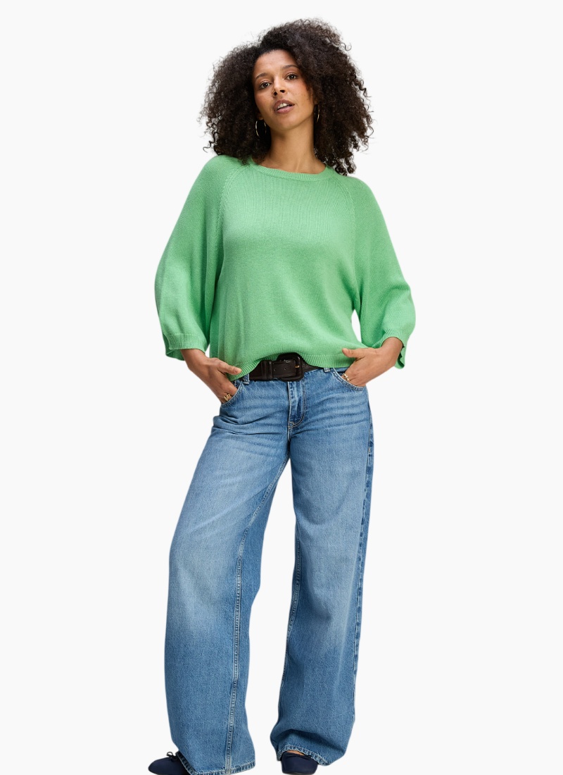 Introducing the Boxy Crew Essential Basil from Zaket & Plover. This relaxed jumper brings a fresh basil green into your everyday wardrobe with a soft, knit finish.