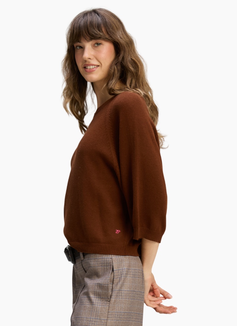 Introducing the Boy Crew Essential Chestnut from Zaket & Plover. This relaxed crew jumper in a rich chestnut tone is a refined wardrobe staple that feels both effortless and polished.