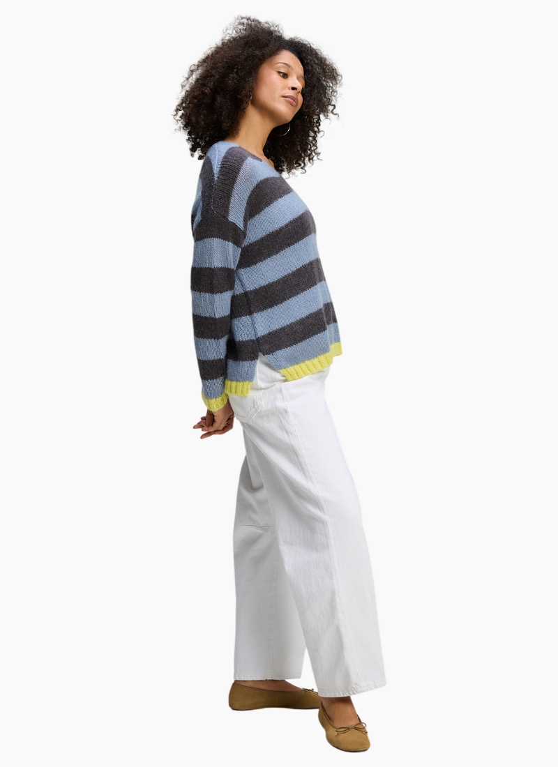 - Distinctive light-blue and charcoal stripe colourway with a lemon-yellow ribbed hem for playful contrast