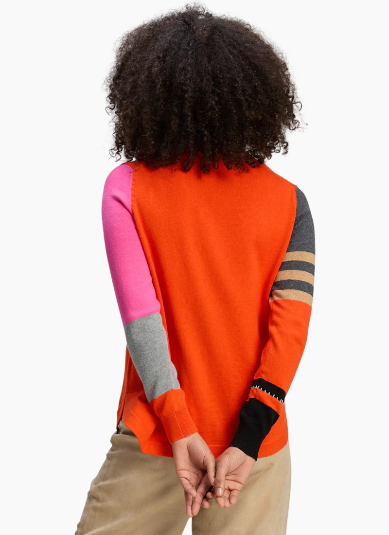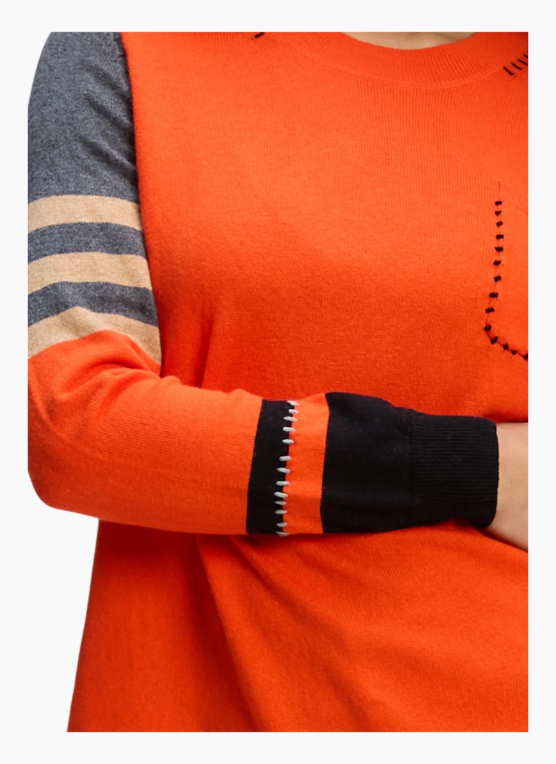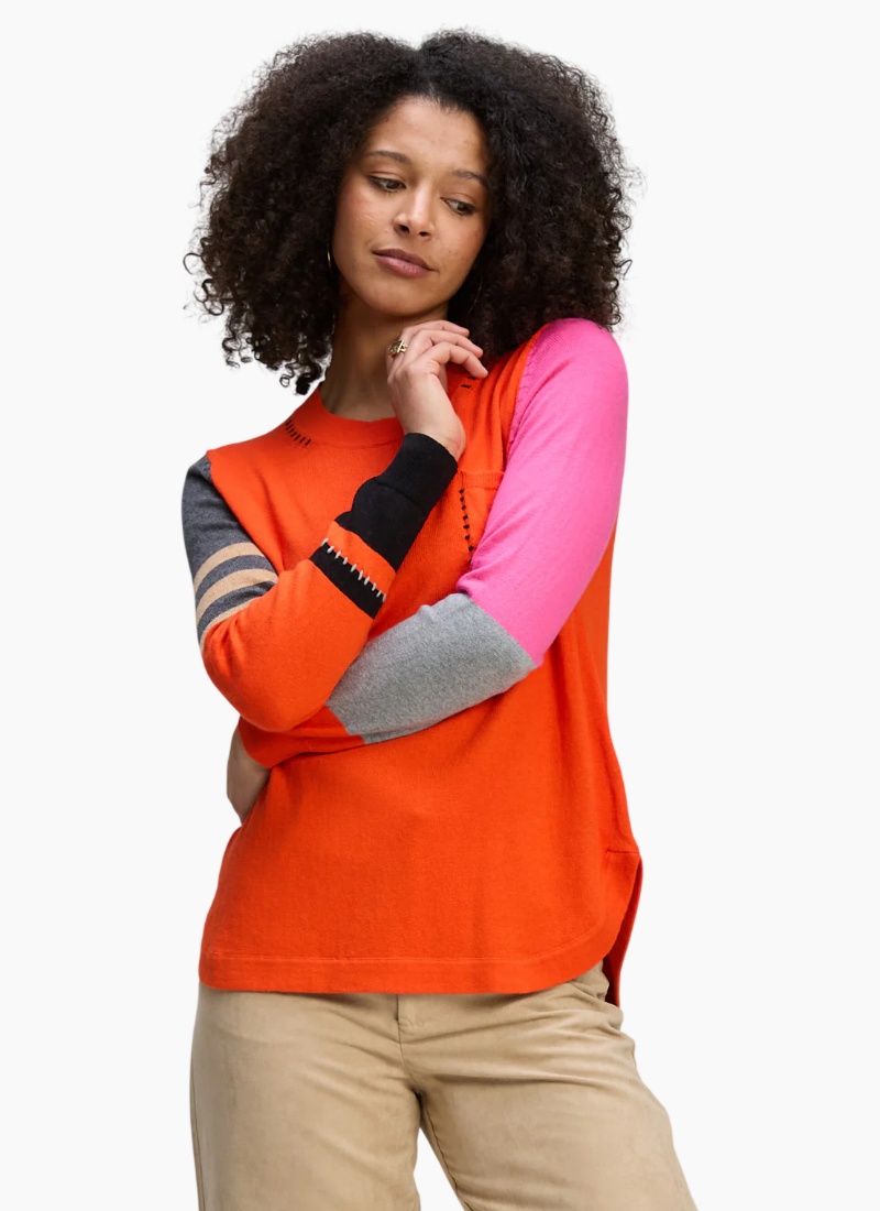 Introducing the Pocket Detail Jumper from Zaket & Plover. This vibrant orange jumper brings a playful, artisan touch to your knitwear collection.