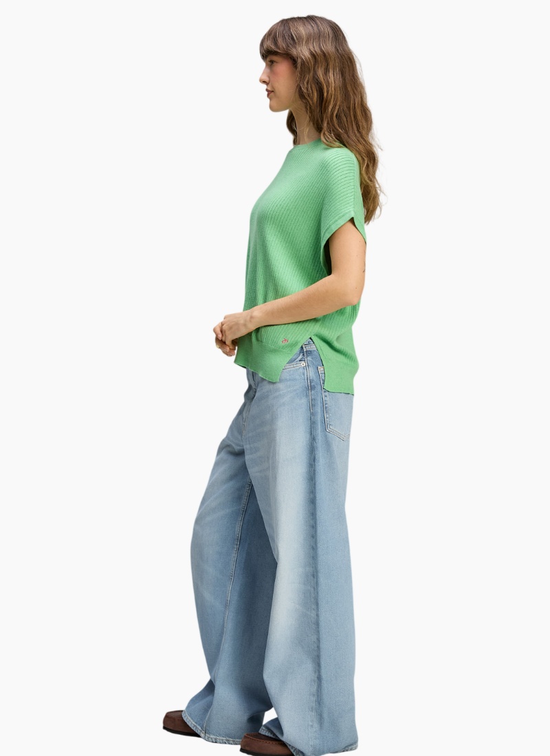 Introducing the Sleeveless Crew Basil from Zaket & Plover. This clean, ribbed jumper in a fresh basil green brings effortless polish to everyday outfits.