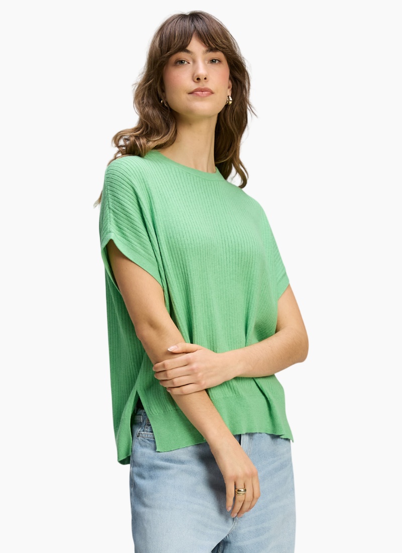 - Ribbed texture and crew neckline add subtle structure and a refined finish
