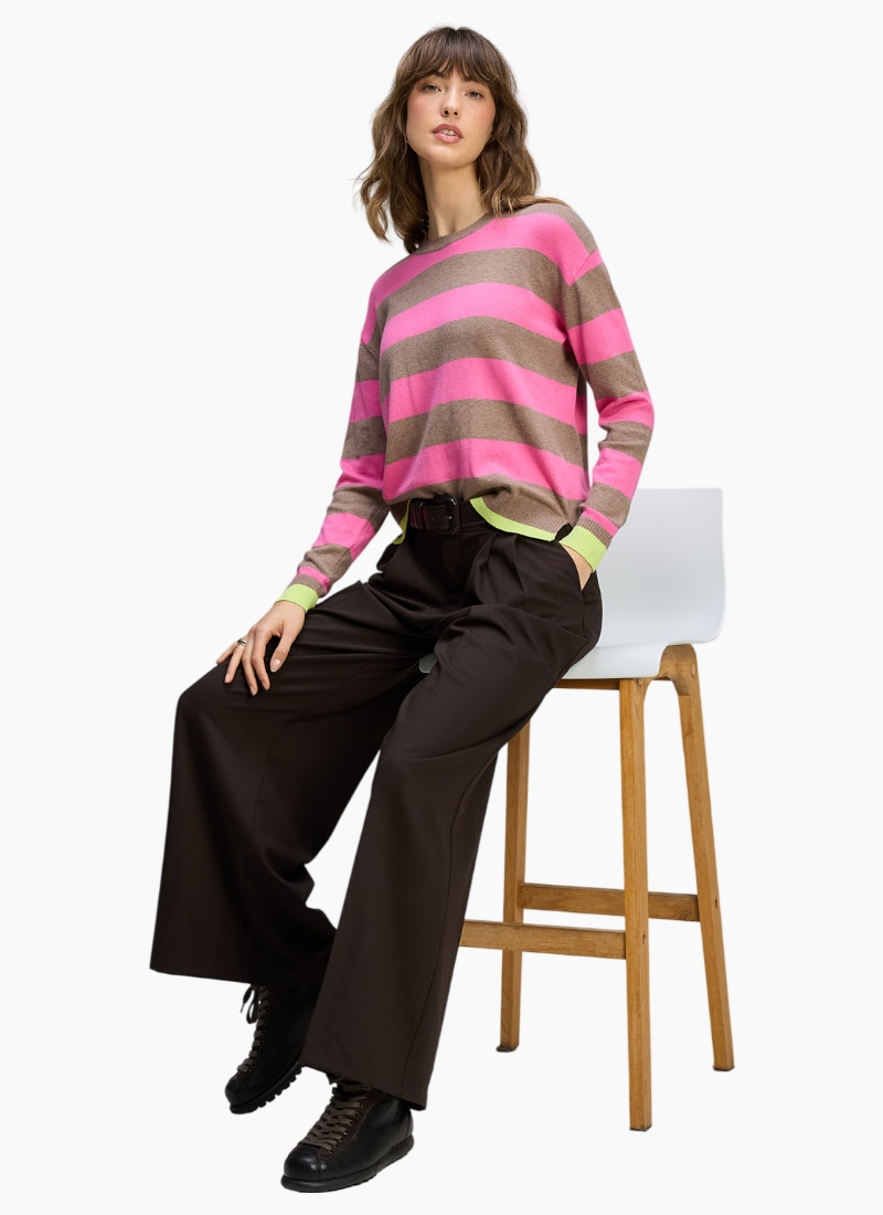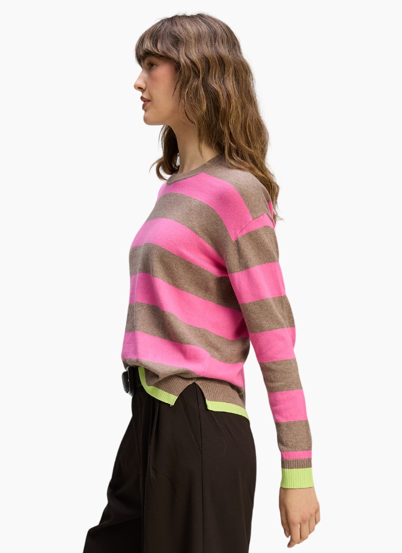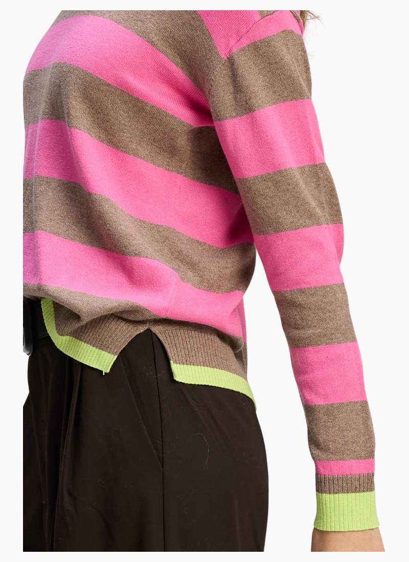 Introducing the Stripe Clash Jumper from Zaket & Plover. A playful, contemporary jumper that brings bold pink stripes to your knitwear edit.