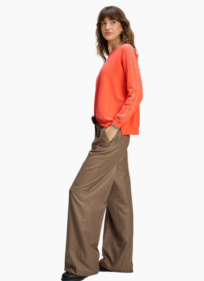 Introducing the Threaded Slv Jumper Melon from Zaket & Plover. This effortlessly stylish jumper brings a fresh, melon-hued statement to your seasonal wardrobe.