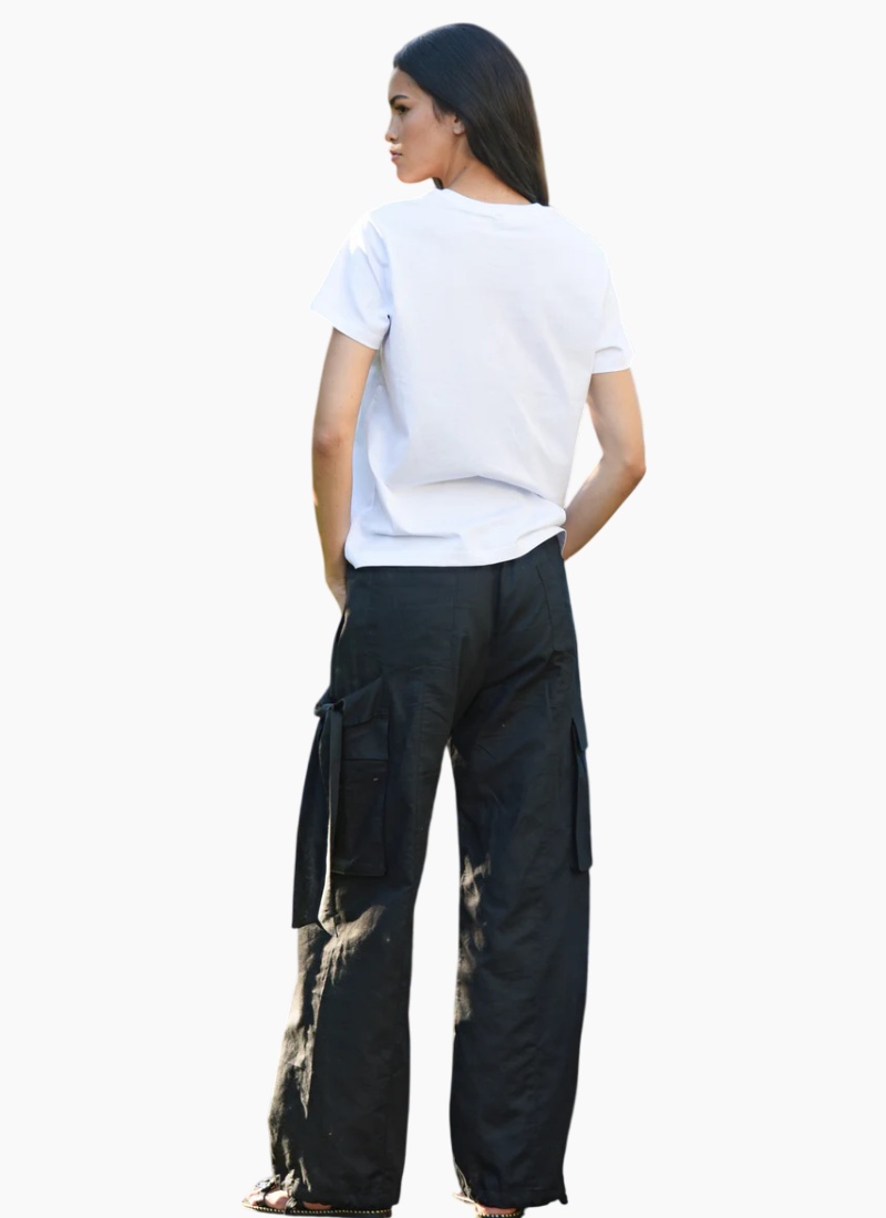 Elevate your everyday with the ‘Stride Along’ pant, exquisitely crafted in the ‘Any Linen Day’ linen fabric. Casual yet refined, this modern silhouette is distinguished by elegant cargo pockets and a graceful bow pocket detail—where utility meets timeless sophistication.• Elasticated waist • Wide leg • Cargo pockets • Bow detail at left pocket • Embroidered COOP logo at back