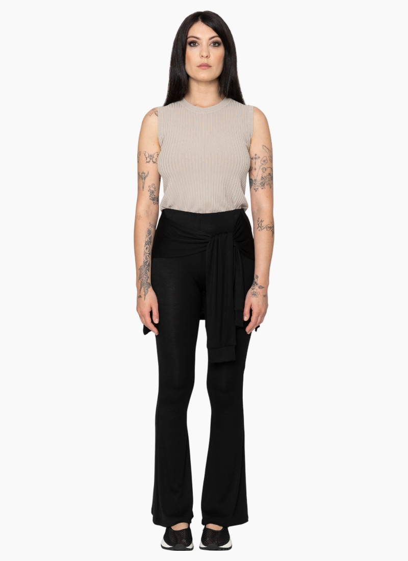 - Designed as pants (Leggings) in classic black, crafted from a stretch jersey viscose blend for a soft, drapey handfeel