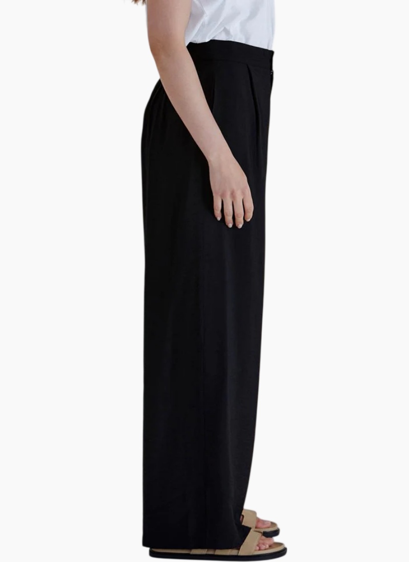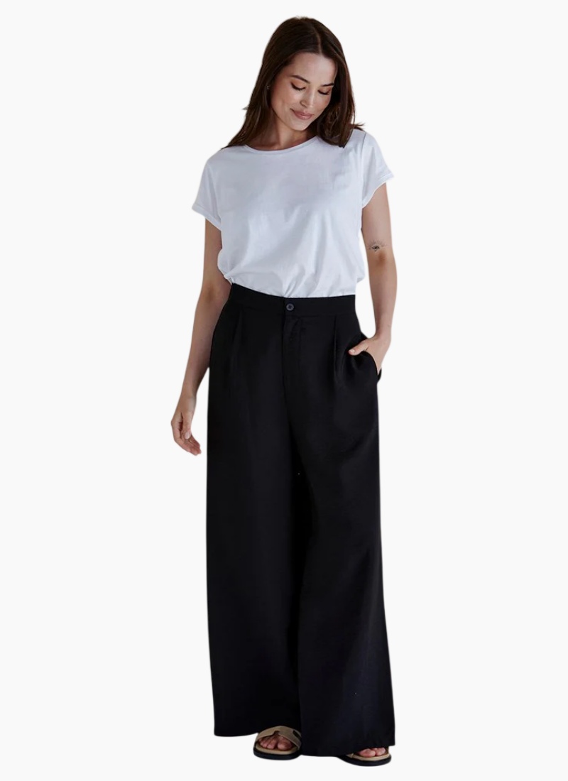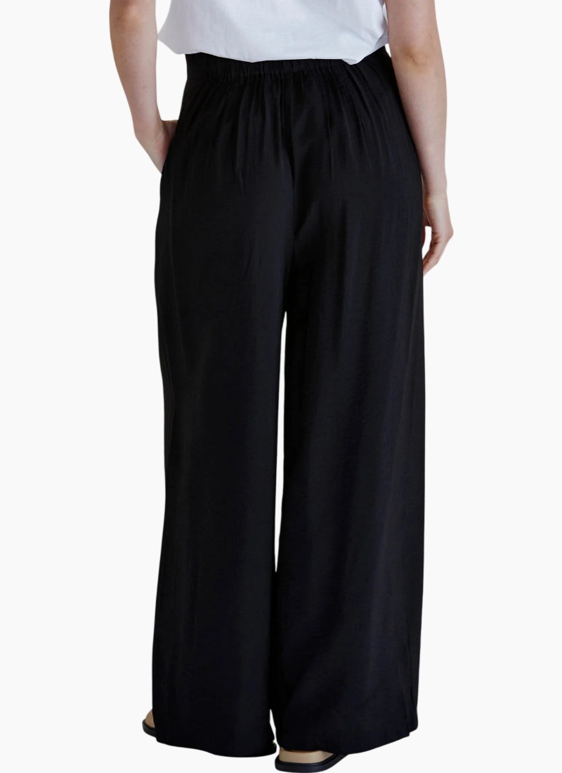 Introducing the Zander Pant from Betty Basics. These black wide-leg Pants bring effortless polish and comfort to your wardrobe.