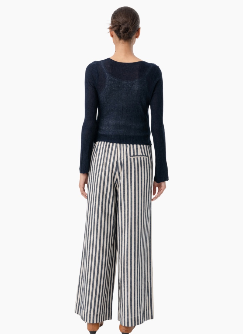 Introducing the 7204 Joyce Pant from Blacklist. These pants bring relaxed sophistication to your wardrobe with a breezy linen feel and bold vertical stripes.