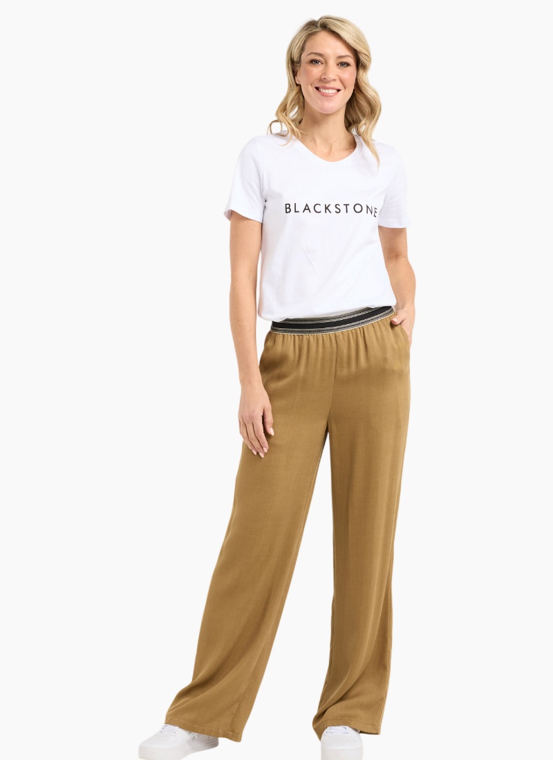 Introducing the Rowan Wool Blend from Blackstone. These women's pants are a warm camel colour crafted in a soft wool-blend fabric for a refined yet relaxed finish.