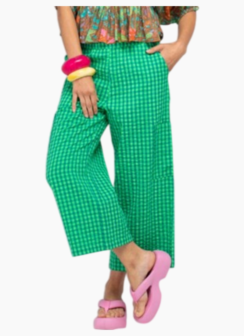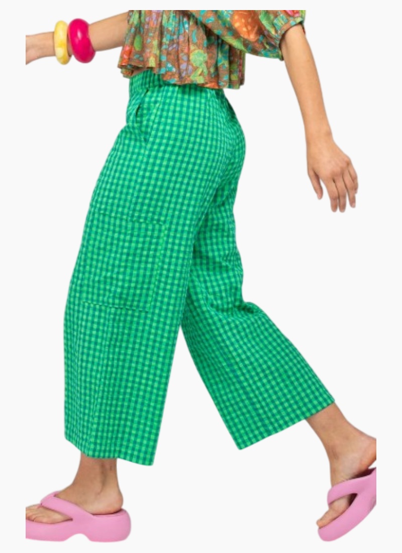 The Boom Shankar Evelina Pant is an easy-to-wear summer pant in 100% cotton seersucker.Add abit of colour into your Summer 100% cotton seersucker gingham, 7/8 length leg, elasticated waistband, two side pockets, two large patch pockets on the lower leg.
