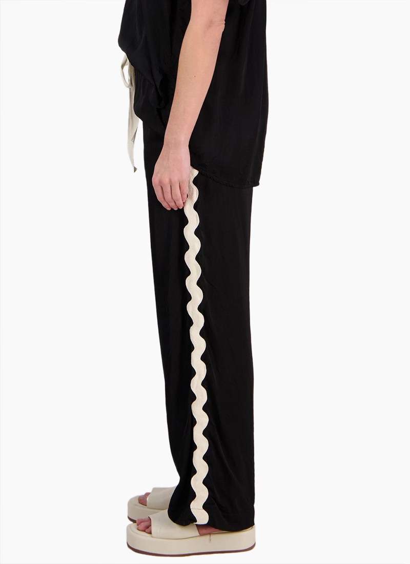 Pepper is not just another pair of wide leg pant, featuring a unique cotton wave contrast rikrak wave down each leg, adding a touch of stylish detail to any outfit. The wide leg design is very flattering, making them a versatile choice for any occasion.