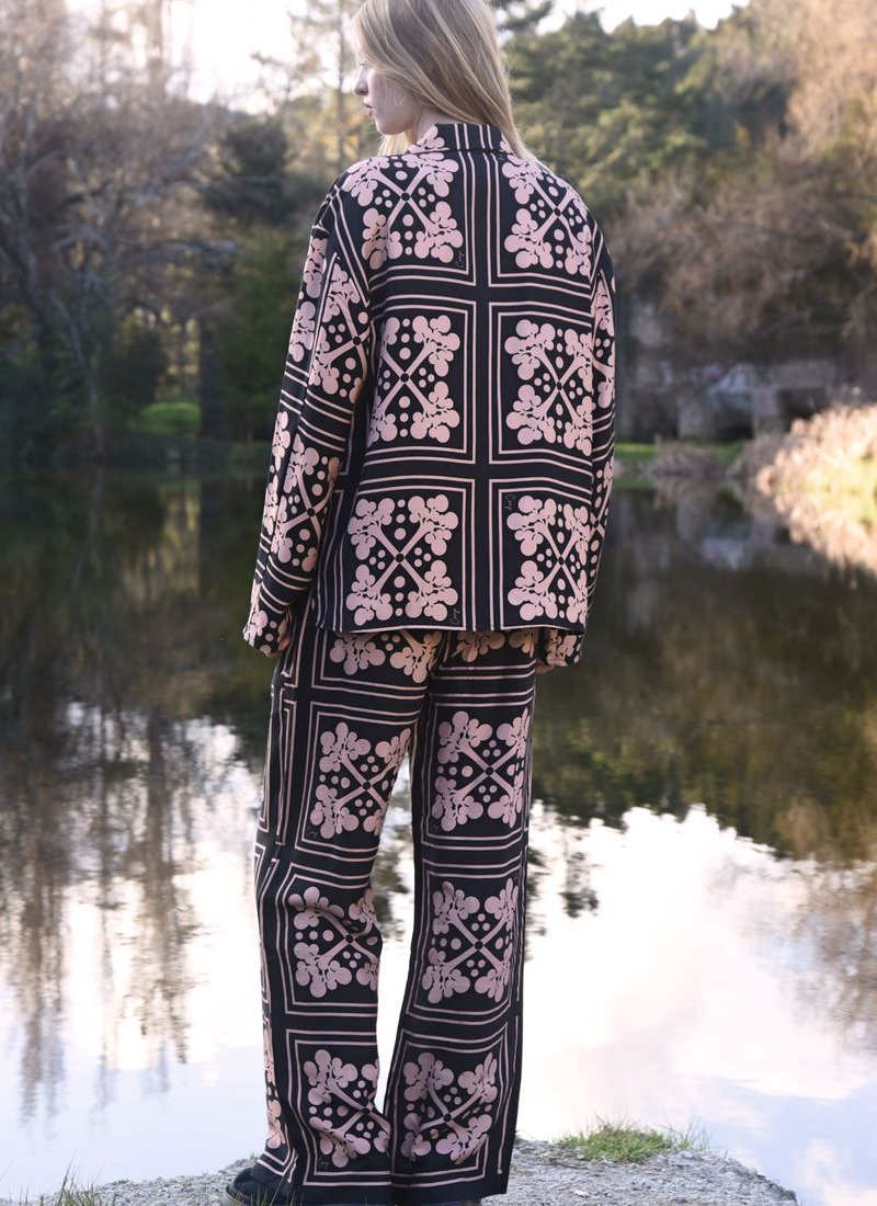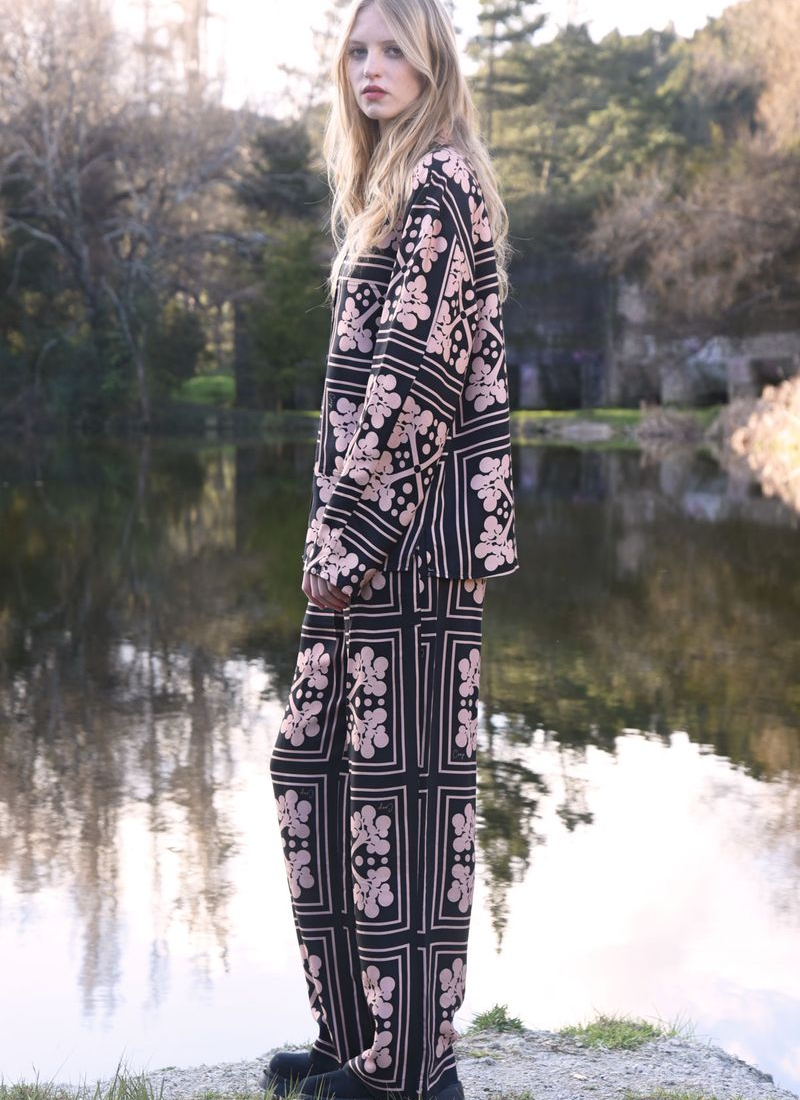 Welcome a bold and vibrant print with the ‘Stride After Stride’ pant. Crafted in the ‘Branching Out’ printed viscose Tencel, these relaxed trousers feature front darts that fall from the waist to a wide leg complete with the bold branch print. Featuring zip fly front, for elevation, and an elastic waist back and pockets for comfort, pair with the matching ‘Branches of Beauty’ t-short for a coordinated look. • Wide leg • Zip fly with button front fastening • Elasticated back waistband • Front darts • Side pockets 50% Viscose, 30% Tencel, 17% Rayon, 3% Linen