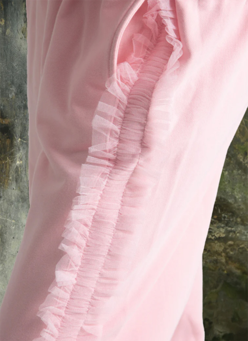 Say goodbye to boring track suits and hello to the playful ‘Track You Down’ track pant. Designed in the ‘On Track’ loopback cotton sweatshirting, these pants feature a full, flattering straight leg with a charming gathered tulle trim down each leg. Perfectly paired with its counterpart the ‘Ruffle Game’ sweatshirt or simply with one of our signature COOP tees for a lowkey yet fashion conscious look.