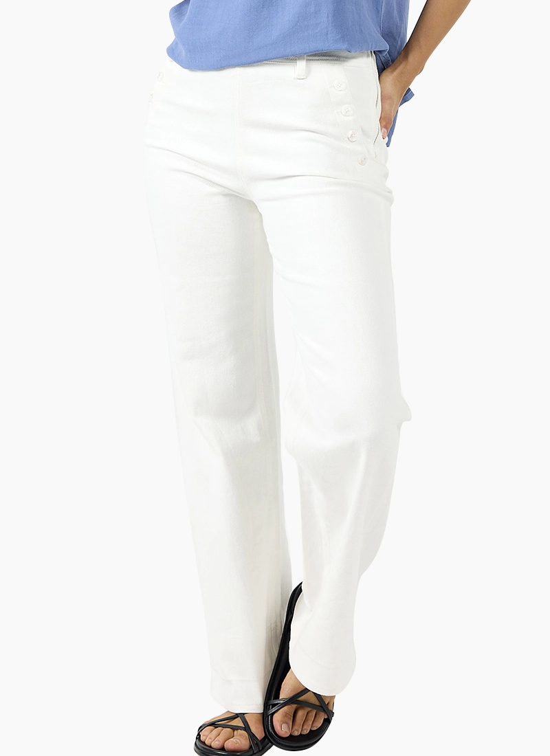 Introducing the Sailor jean from Drama the Label - the latest must-have for any fashion-forward individual. These jeans are not only super comfortable, but also offer the perfect amount of stretch for a flattering fit. Featuring front slant pockets with button detailing, back pockets, belt loops, and a sleek flat front design, the Sailor jeans are both stylish and practical. Upgrade your wardrobe with these versatile and chic jeans today.