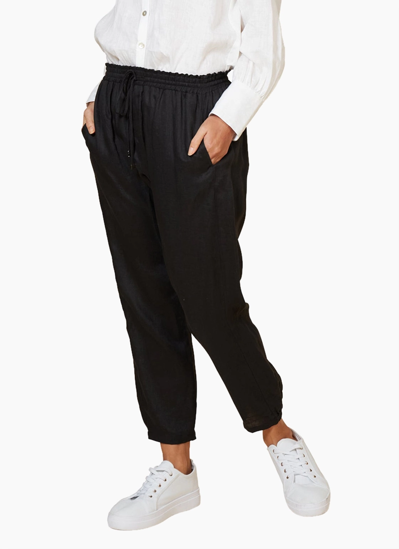 Adopt a natural style into your outfit rotation with the linen Studio Relaxed Pant. These tapered pants, unsurprisingly, are relaxed and made to be an everyday staple. The elasticised drawstring waist ensures that your comfort requirements are met and can move freely throughout the day. Style it with a plain t-shirt and sneakers for a cool minimal look.