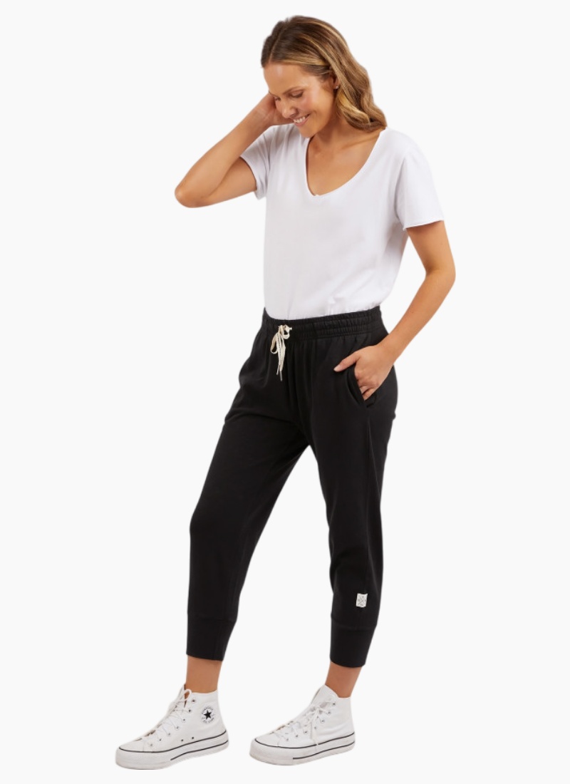 Introducing the Elm Brunch Pant. A relaxed, everyday essential in black that pairs comfort with casual style and easygoing versatility.