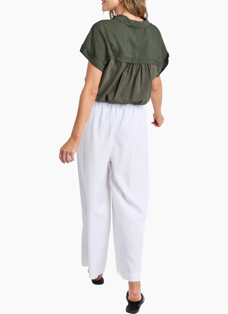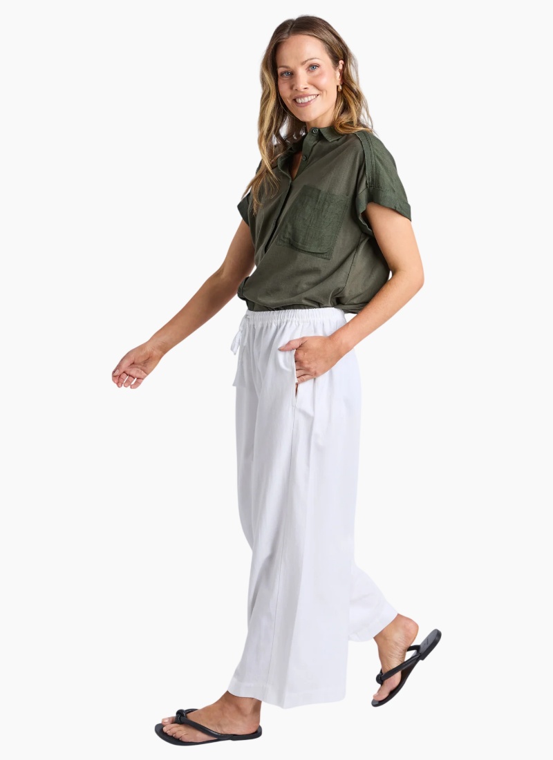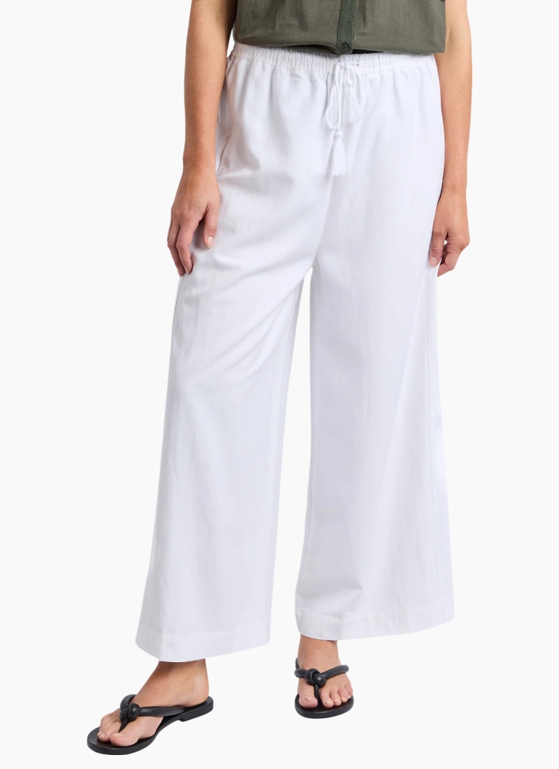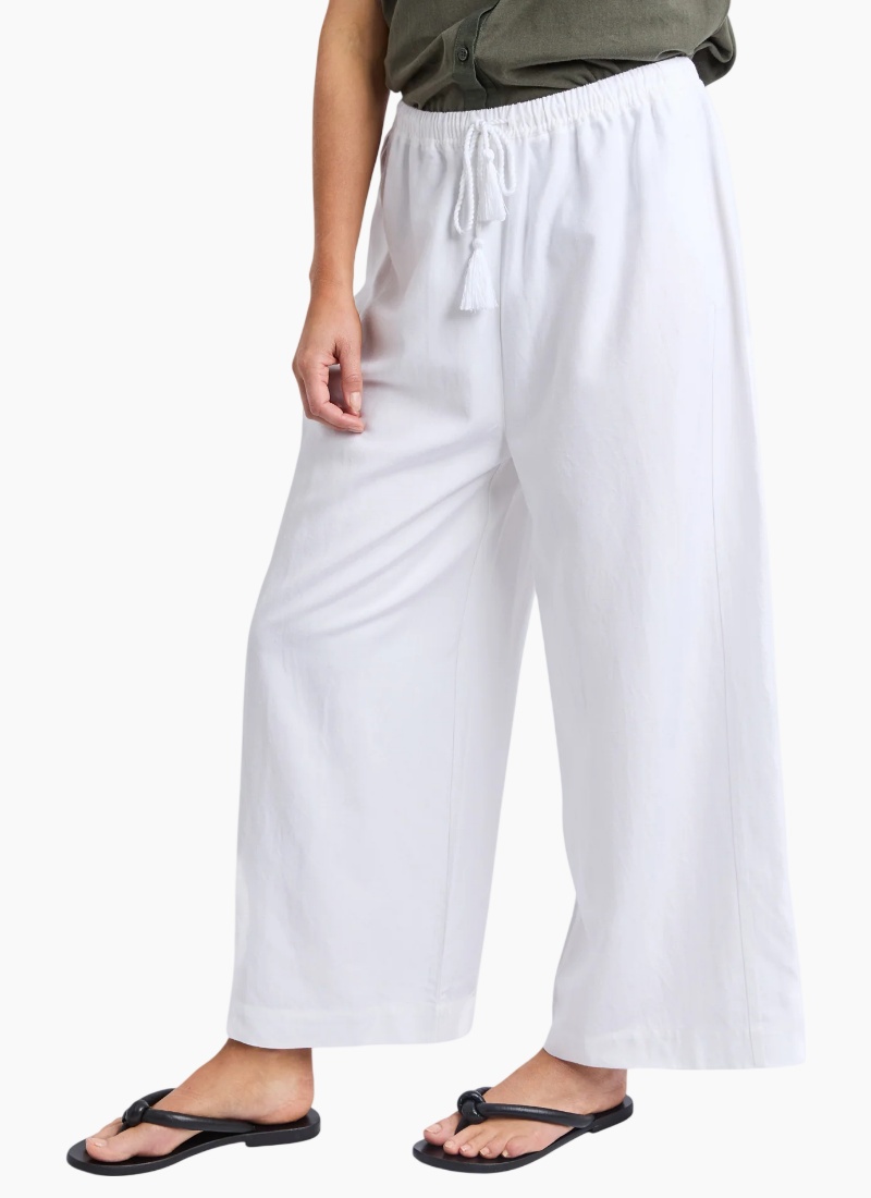 Introducing the Maura Pant from Elm. A breezy white pant designed to make relaxed, warm-weather dressing effortless.