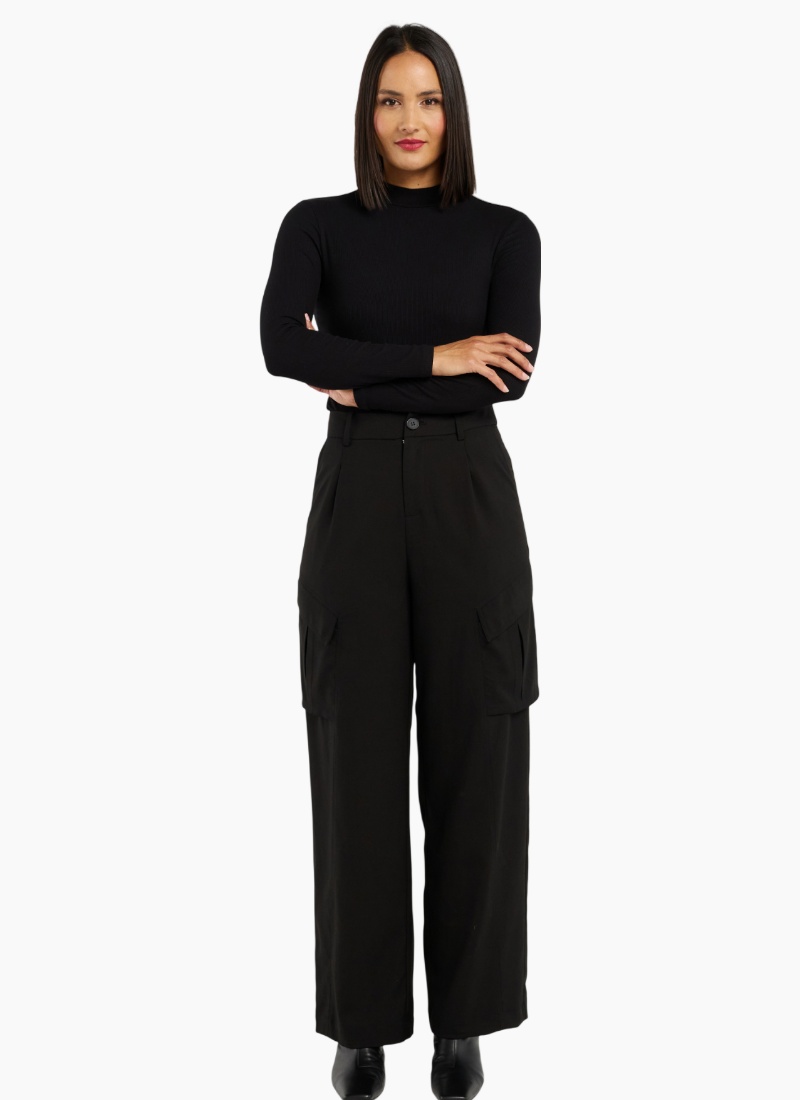 Elevate your everyday style with the Blake Pant — a high-waisted, straight-leg silhouette designed to flatter and streamline. Crafted from a structured yet comfortable fabric, it features subtle thigh-pocket detailing that adds a modern utilitarian twist without overwhelming the clean lines. The tailored fit elongates the leg beautifully, making it perfect for both polished office looks and elevated casual wear. 49% Polyester 41% Rayon 5% Tencel 3% Spx 2% Nylon