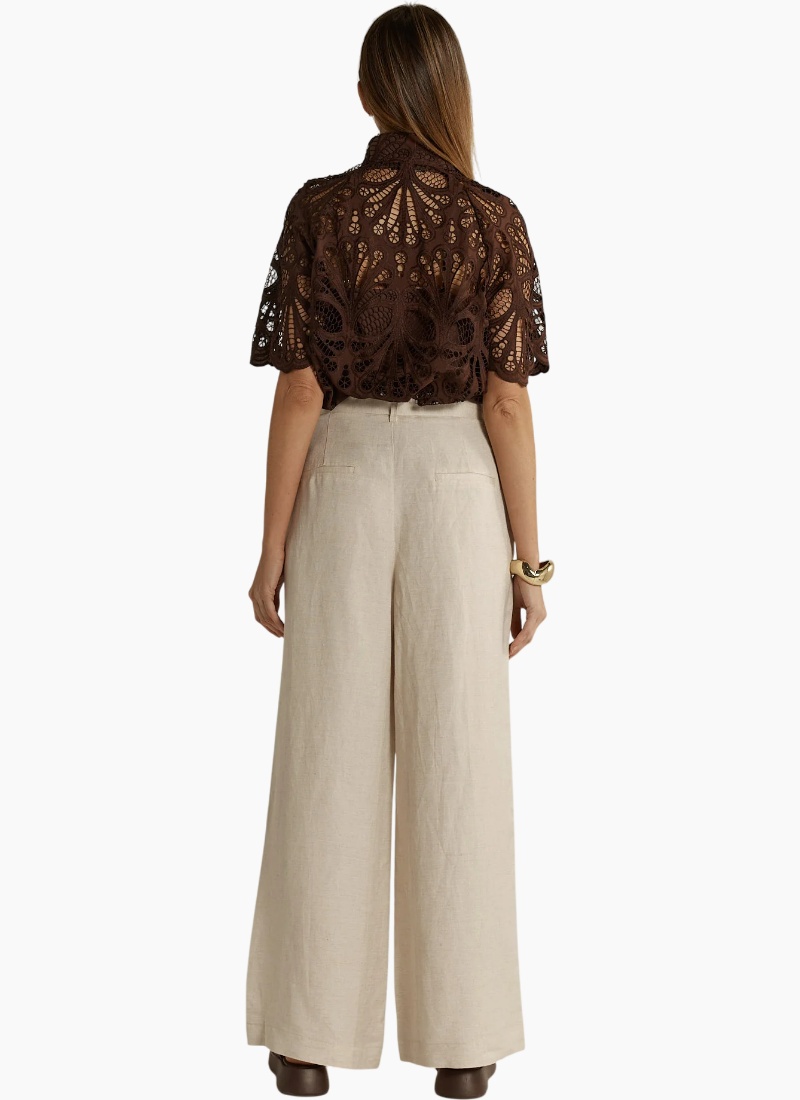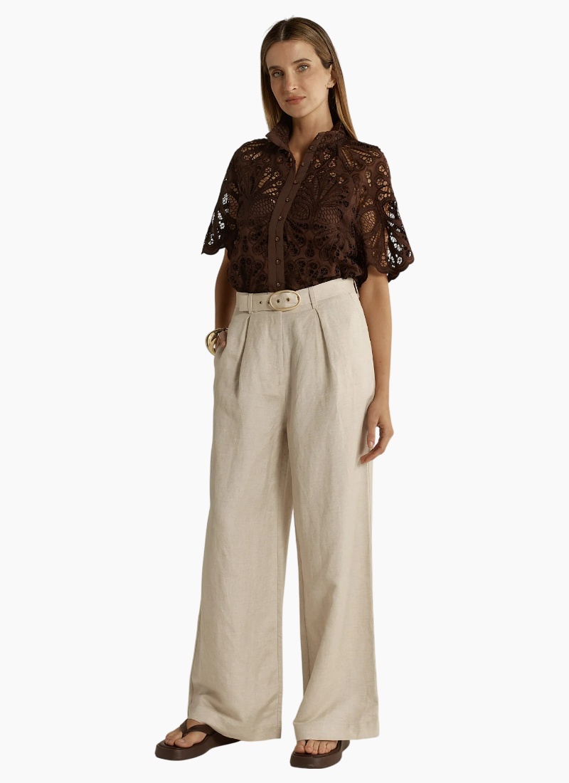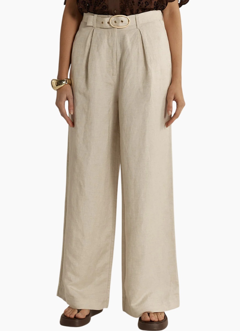 The Amara Belted Pant is tailored ease with a refined finish. Featuring a matching belt, soft pleats and a concealed fly, it shapes a flattering, elongated line. Side pockets add a practical touch. Effortless, modern and polished — a wardrobe essential.-Matching belt included -Pleat detail -Side pockets -Concealed fly front opening Fabric and Care 55% Linen 45% Viscose Warm gentle hand wash and warm iron