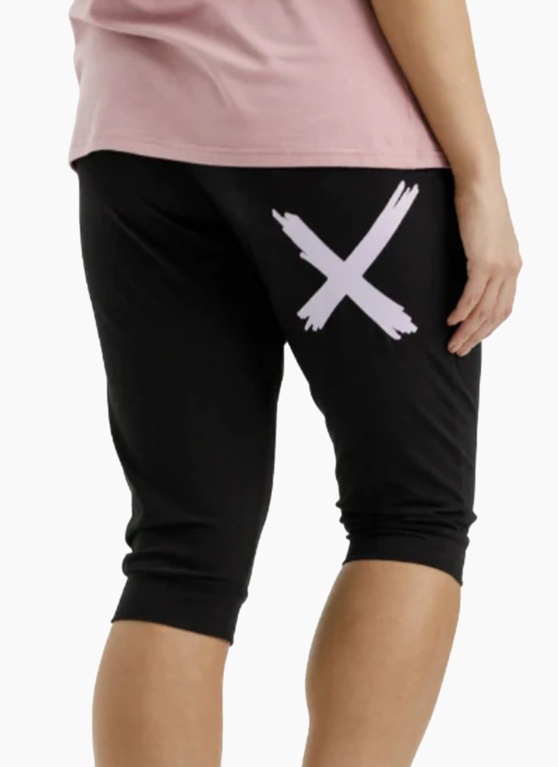 These pants are 'Summer weight 190GSM' in Black with our custom Lilac X colour on the back.