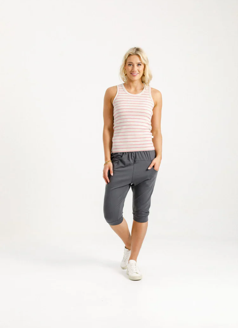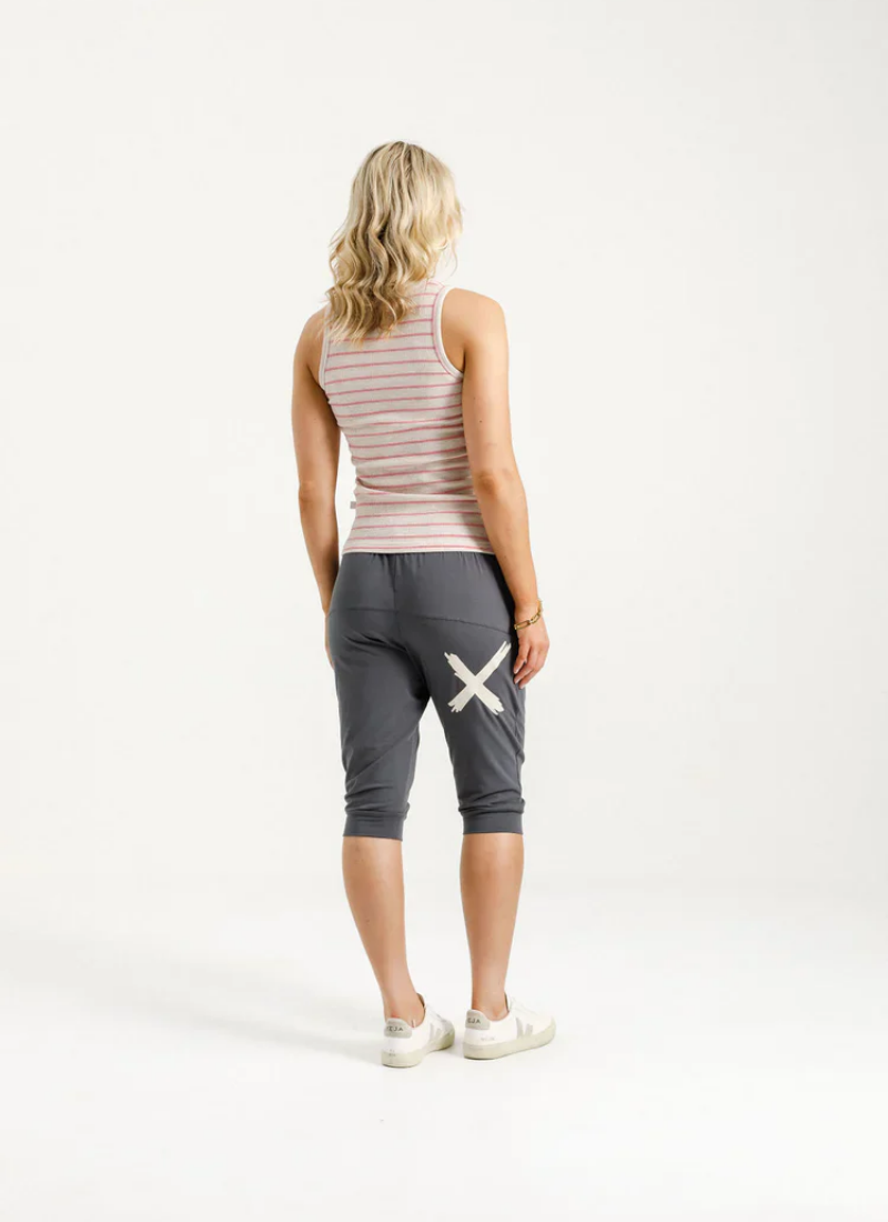 World-famous in New Zealand for good reason - the 3/4 length Apartment Pants are the shorter version of our full length Apartment Pants. Whether you’re lounging at home, running errands, or rushing out the door, these pants are the ultimate in comfort and style.With a fitted cuff at the bottom of the leg, a comfortable elasticated waistband, and deep pockets, they’re as practical as they are stylish. Designed to sit loosely on your hips and backside, with a relaxed dropped-crotch fit, these pants redefine effortless everyday wear.