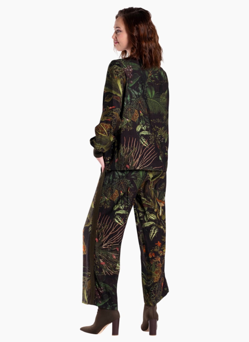 Introducing the BRIE Pants - Green Foilage from Jellicoe. These statement pants bring botanical charm to everyday dressing with a luxurious drape and rich colourway.