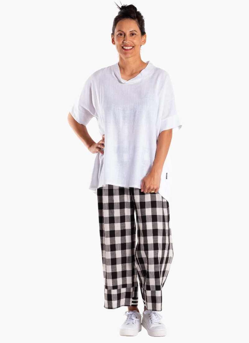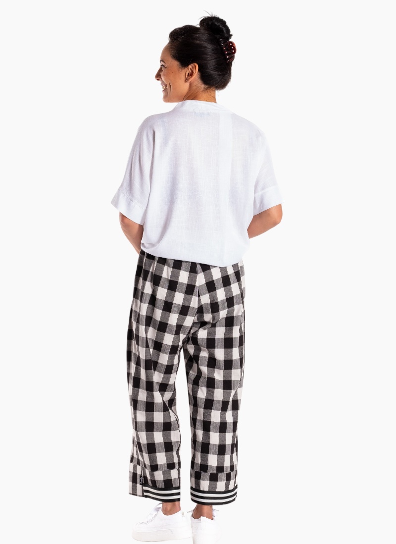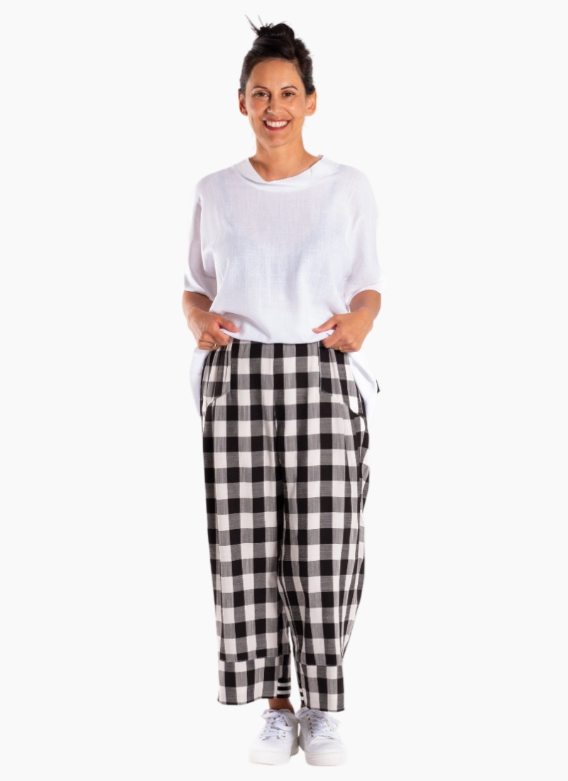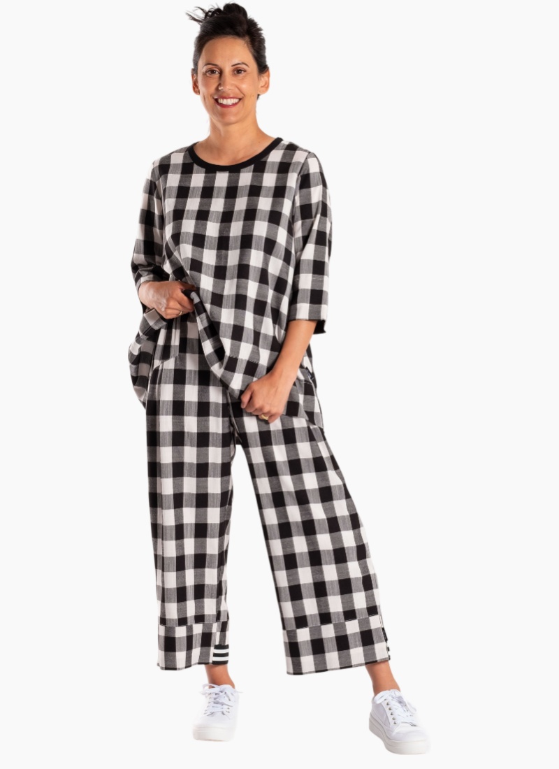 - Black Check. A relaxed, contemporary pant crafted in a bold black-and-white check that feels effortlessly chic.