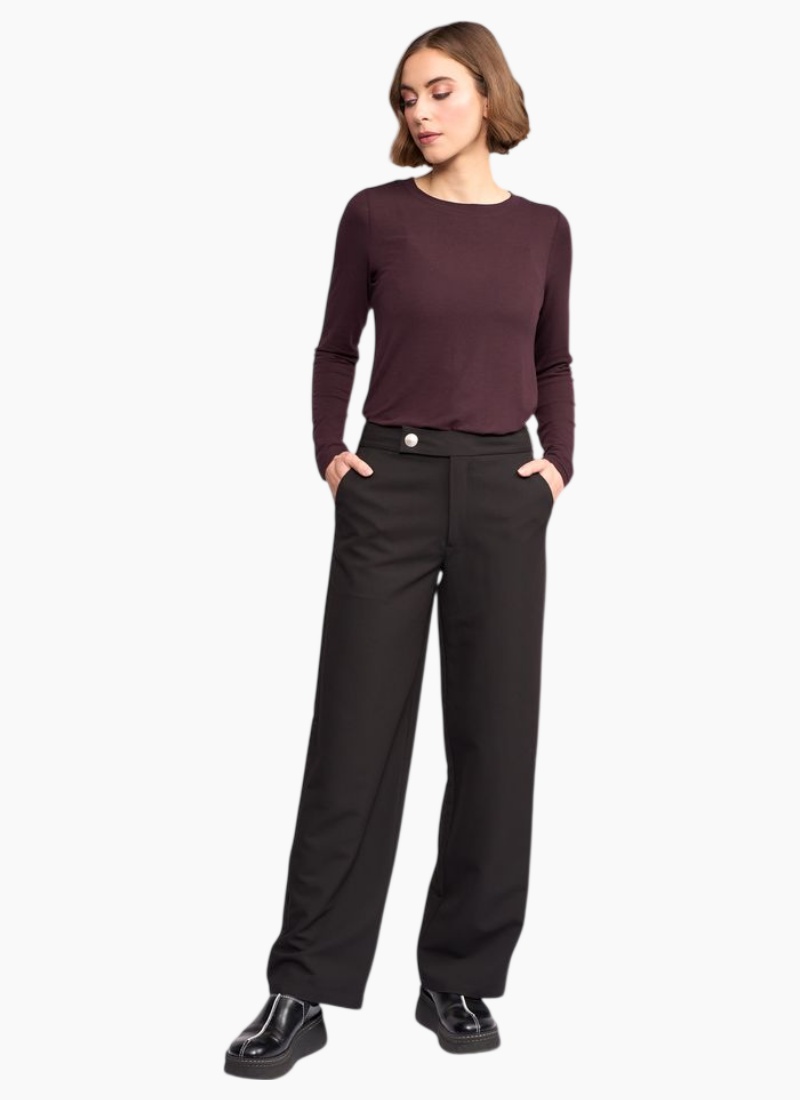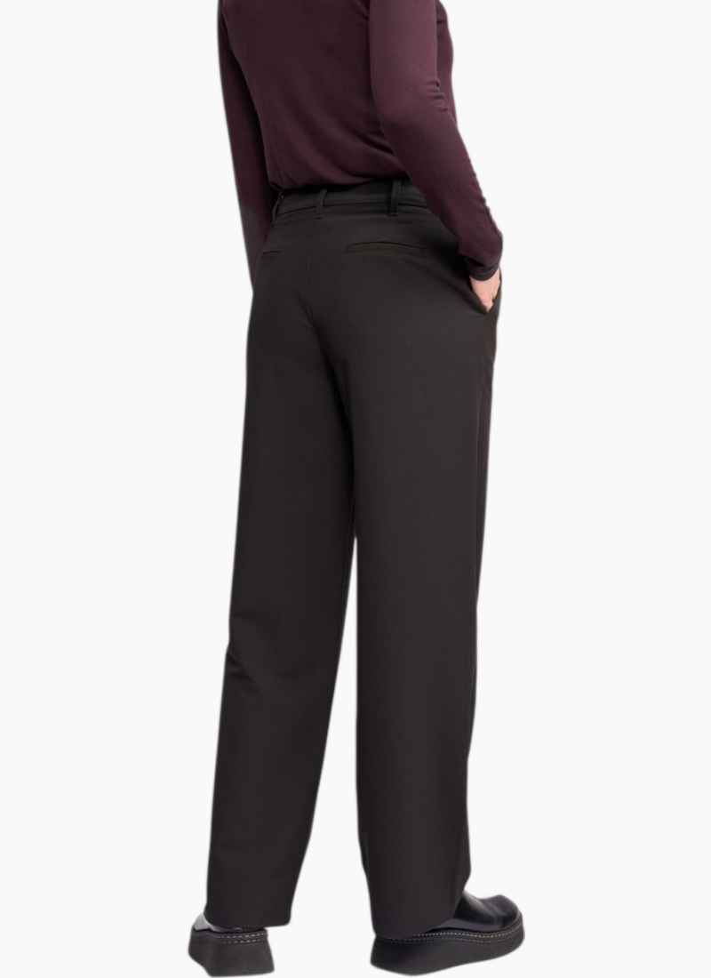 Introducing the Knewe BLAZE Pants, a refined wide-leg wardrobe staple in classic black.