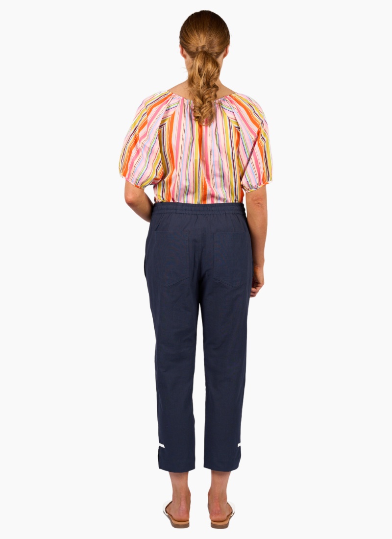 The Checker Pant is a lightweight cotton summer essential with a linen look and a straight-leg ankle grazer fit. Featuring an elastic waistband with contrast drawstring and subtle side seam splits, it combines relaxed comfort with fresh, easy style.• KNEWE LABEL Checker Pant in Ink/ White • Made from a lightweight cotton fabric with a linen look • Straight leg ankle grazer fit • Pull on style with an elastic waistband and contrast drawstring • Faux fly • Front panel seams with side seam pockets • Side seam splits with contrast herringbone tape • Back patch pockets • Model wears size 10 Cotton