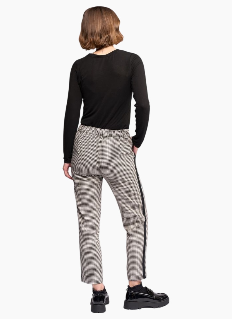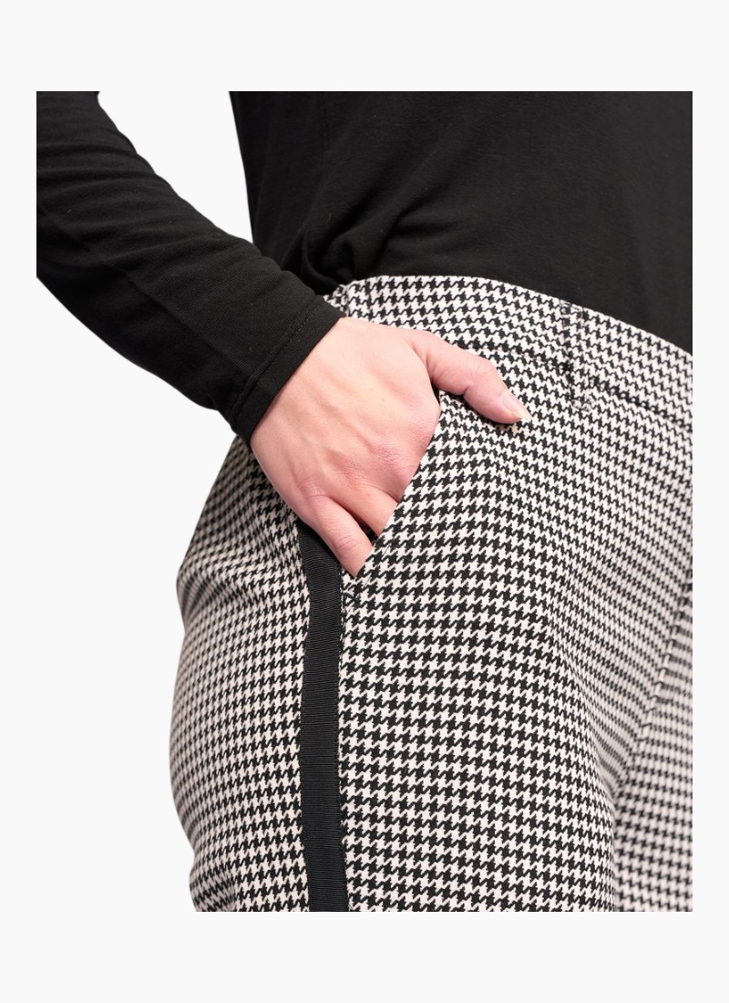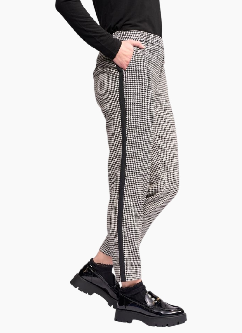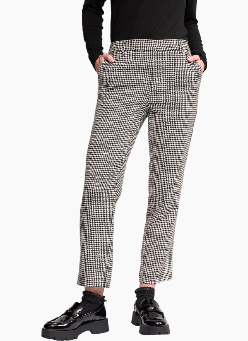 Introducing the COMO Pant - Houndstooth from Knewe. A refined tailored pant in a classic black and white houndstooth, designed for effortless polished looks.