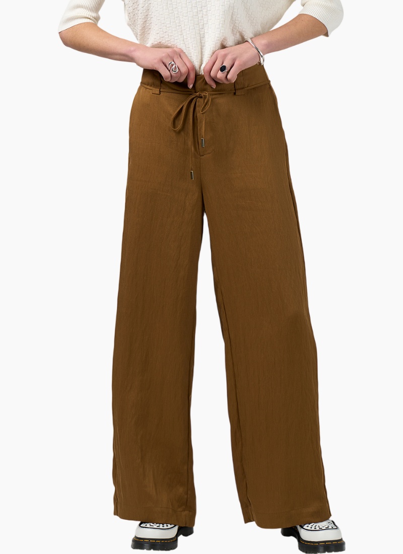 Introducing the Polaris pant from Madly Sweetly. These wide-leg pants arrive in a warm brown colour and are cut from a lightweight linen blend for an easy, breezy finish.