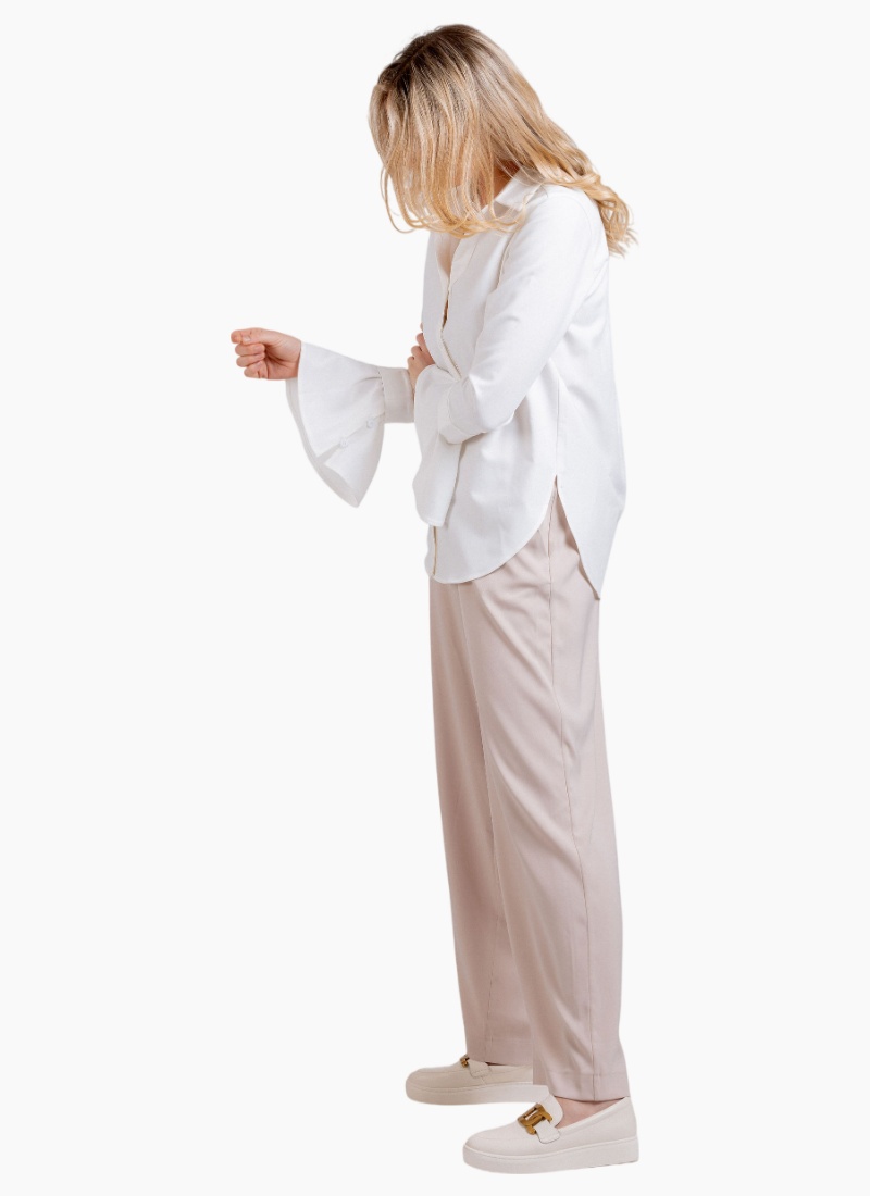- A relaxed wide-leg silhouette crafted as a contemporary pair of pants for versatile dressing