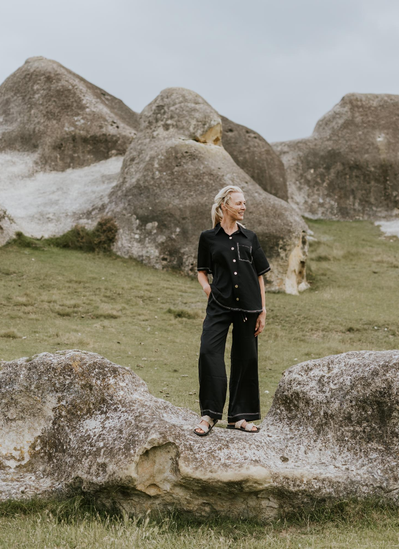 Introducing the BOWIE PANT from Moke. A relaxed, wide-leg black pant designed for effortless style and everyday comfort.