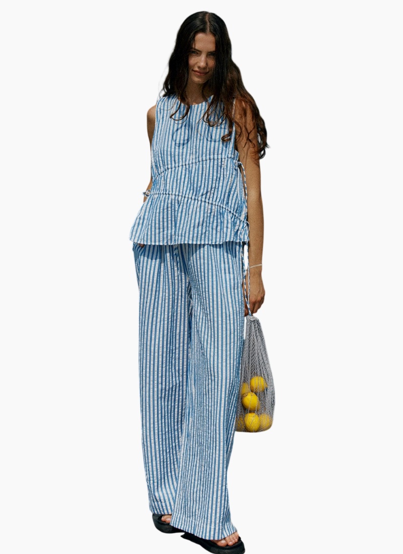 Adjustable tie sides let you shape and style this top your way, while the asymmetric gathering at the bust adds a cool, fashion-forward twist. Lightweight and relaxed, it’s the perfect companion to your favourite denim. Playful, versatile and always ready for a good time.