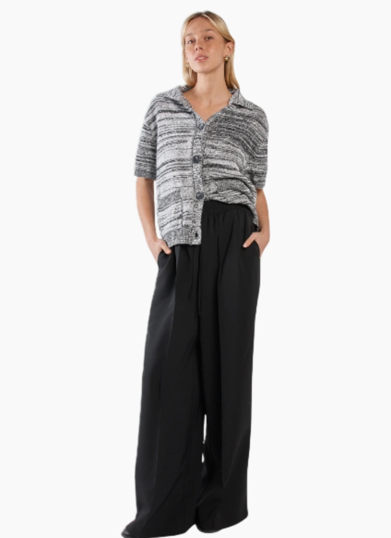 - Elasticised waistband and side pockets offer relaxed practicality and effortless wearability