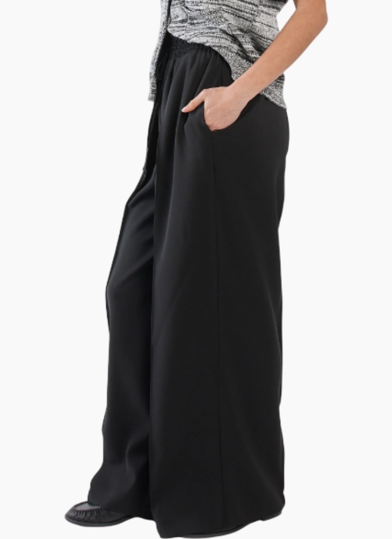 - Crafted from a soft poly elastane The Rossi Casual Pant blends comfort with a polished finish. A wide-leg profile and pinched front seam create an elevated silhouette. The elasticated waist ensures effortless wear. A trans-seasonal staple with modern appeal.
