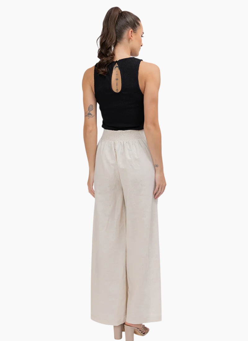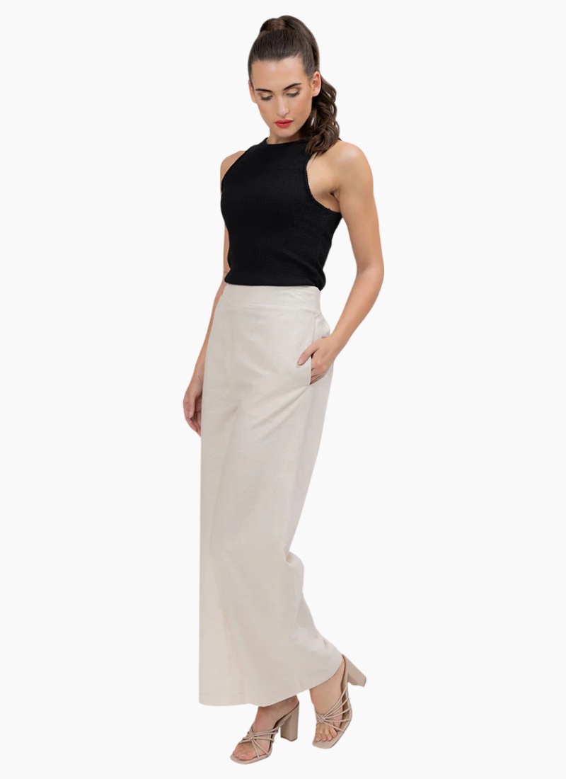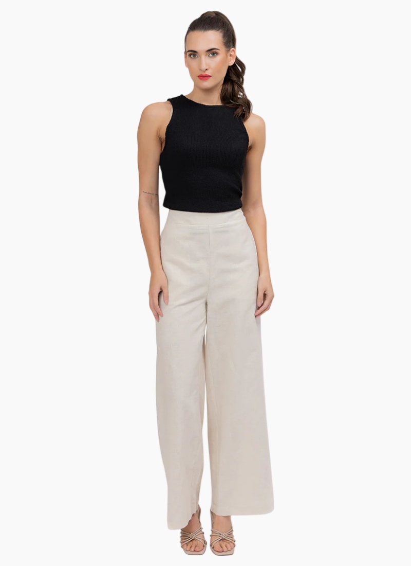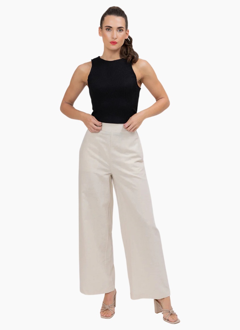 - OATMEAL from Seeking Lola. This elegant pant blends effortless tailoring with relaxed wide-leg ease.
