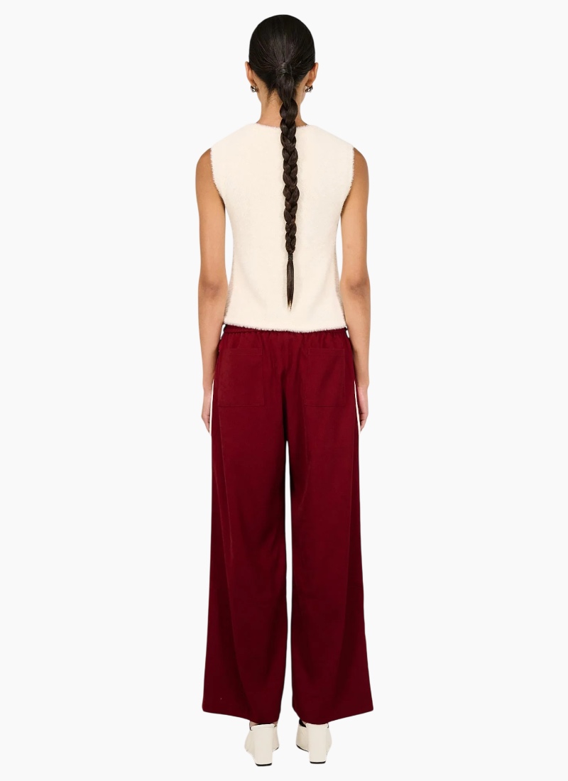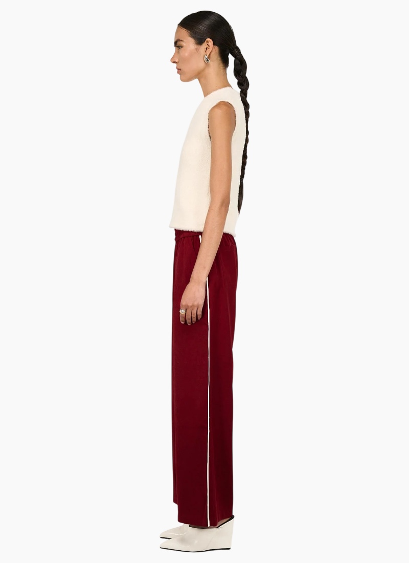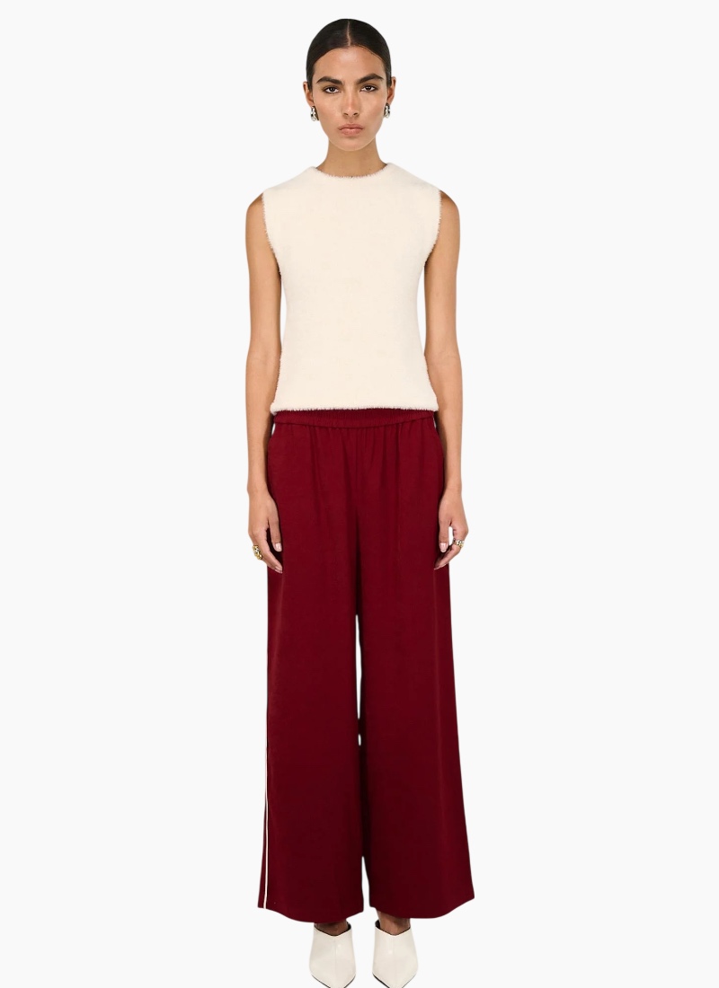 The Echo Red Silky Wide Leg Pant is a statement staple, designed with a fluid drape and relaxed tailoring for effortless, elevated wear. Crafted from a soft, lightweight fabrication, it features a comfortable elasticated waistband and a full-length wide leg silhouette. Finished with contrast side stripe detailing, it brings a modern, sporty edge to a refined look. Features: Elasticated waistband for all-day comfort Wide leg silhouette Full-length design Contrast side stripe detail Rich red tone Soft, breathable feel Details & Care: Designed in Sydney, Australia 95% Polyester, 5% Elastane Wash separately Do not bleach, soak, wring, or tumble dry Dry flat in the shade Cool iron on reverse if needed