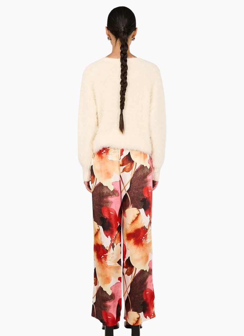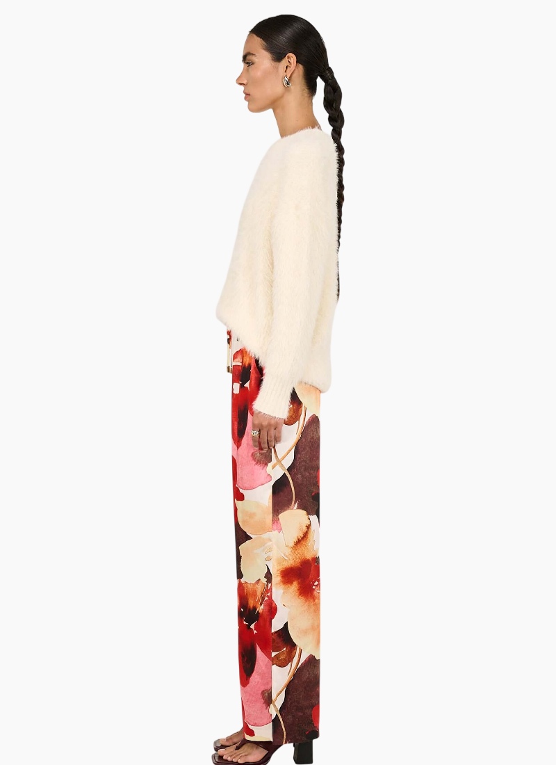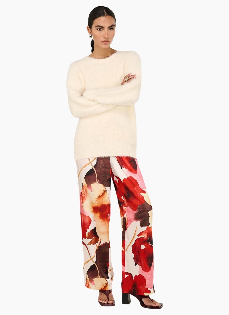 The Kaia Floral Silky Wide Leg Pants are bold yet effortless, combining a statement print with a relaxed, fluid silhouette. Designed to drape beautifully, they feature a comfortable elasticated waistband with an adjustable drawstring and a full-length wide leg that moves with ease. The painterly floral print adds depth and dimension, elevating this everyday essential. Style it your way: Pair with a simple top for a balanced look, or wear with the matching print for a coordinated set. Features: Elasticated waistband for comfort Adjustable drawstring Wide leg silhouette Full-length design Lightweight, silky fabrication All-over abstract floral print Details:
