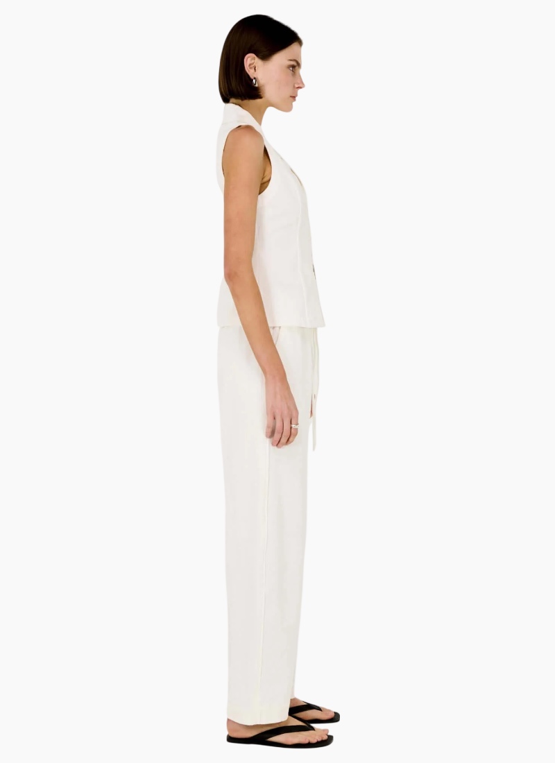 The Portia White Cotton Relaxed Wide-Leg Pant combines comfort with refined structure. Crafted from breathable cotton drill, this style features a relaxed wide-leg silhouette that falls fluidly from the waist. Designed with a comfortable pull-on waistband, it offers ease without compromising on polish. Perfect for elevated everyday wear, these pants pair seamlessly with the matching Portia Vest for a timeless, modern look.