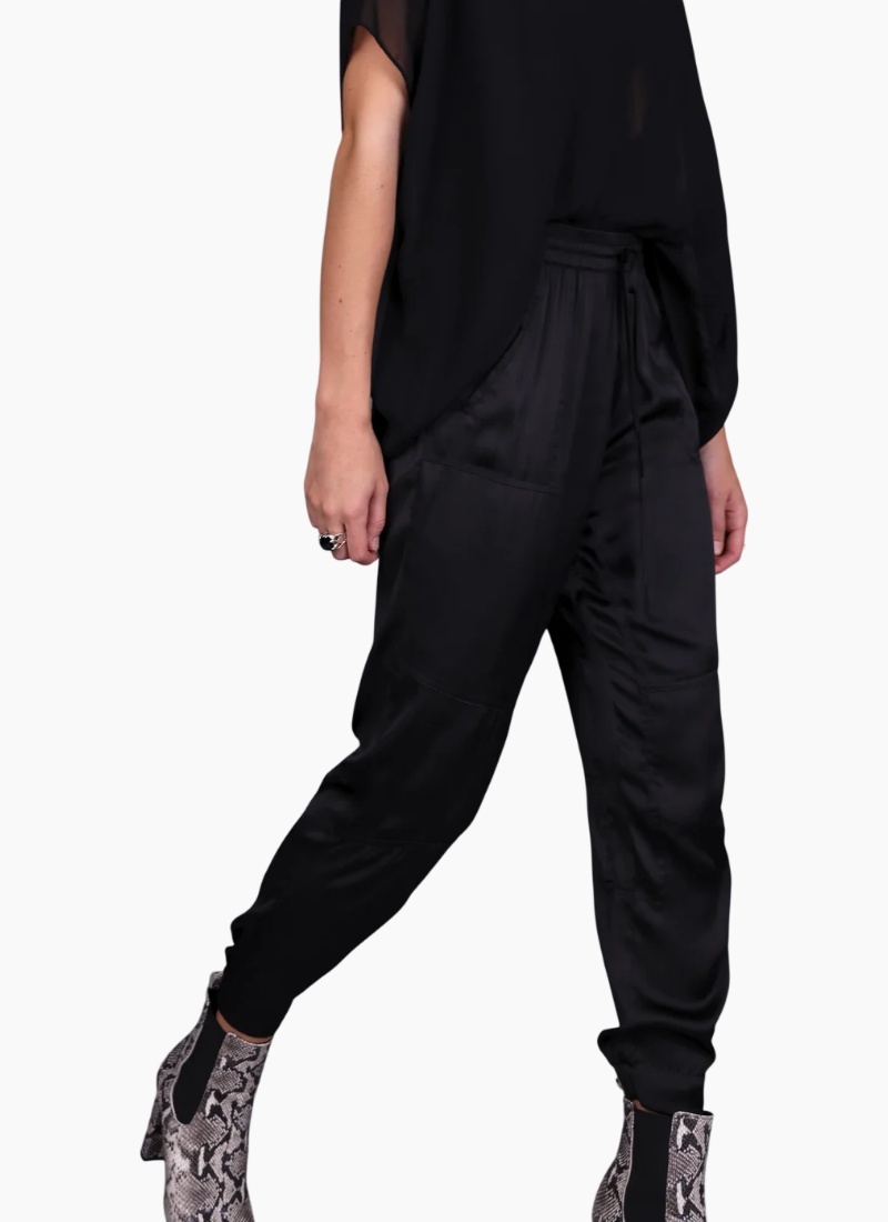 The Slouch Satin Pant is a Storm Icon.If you're looking for a relaxed pair of trousers that will fit effortlessly into a trans-seasonal wardrobe these, are it! From casual streetwear-inspired looks to dressy nights out or even an edgier workwear vibe, these pants are an easy way to go from day to night, and above all, they’re comfortable. An easy to wear soft relaxed pant, in a beautiful vintage satin, featuring an elasticated drawstring waist, panelling detailing and front patch pockets. Style Tip: Pair them with classic wardrobe staples like our Icon tees, shirts, and blazers to simplify the look and make this trend driven piece fit more seamlessly into your wardrobe Fit Guide: This pant fits true to size Our models wear size S. 100% Polyester. Cool hand wash separately inside out using a mild detergent.