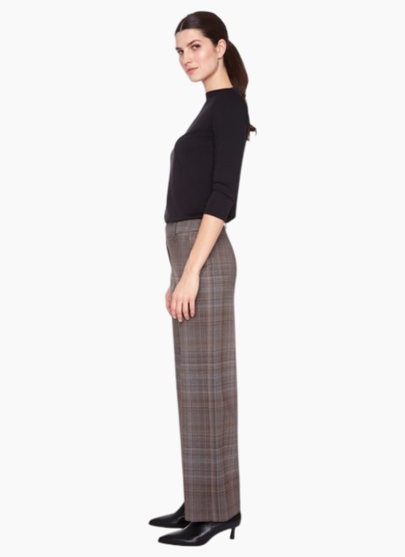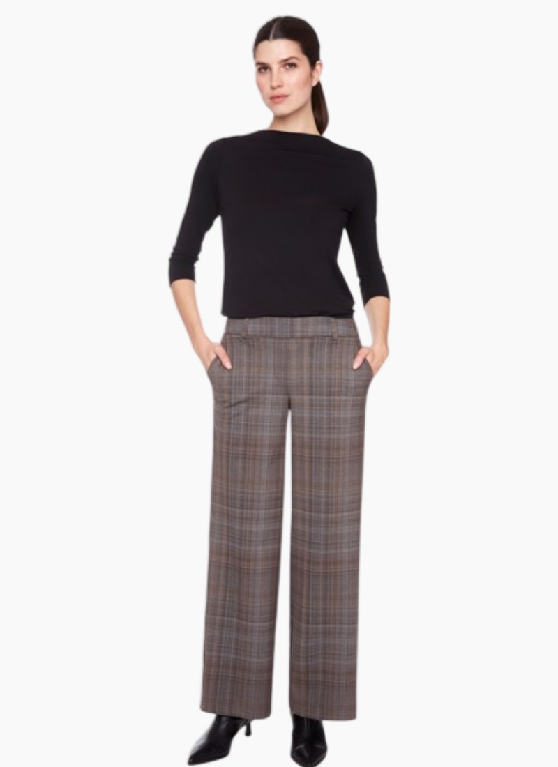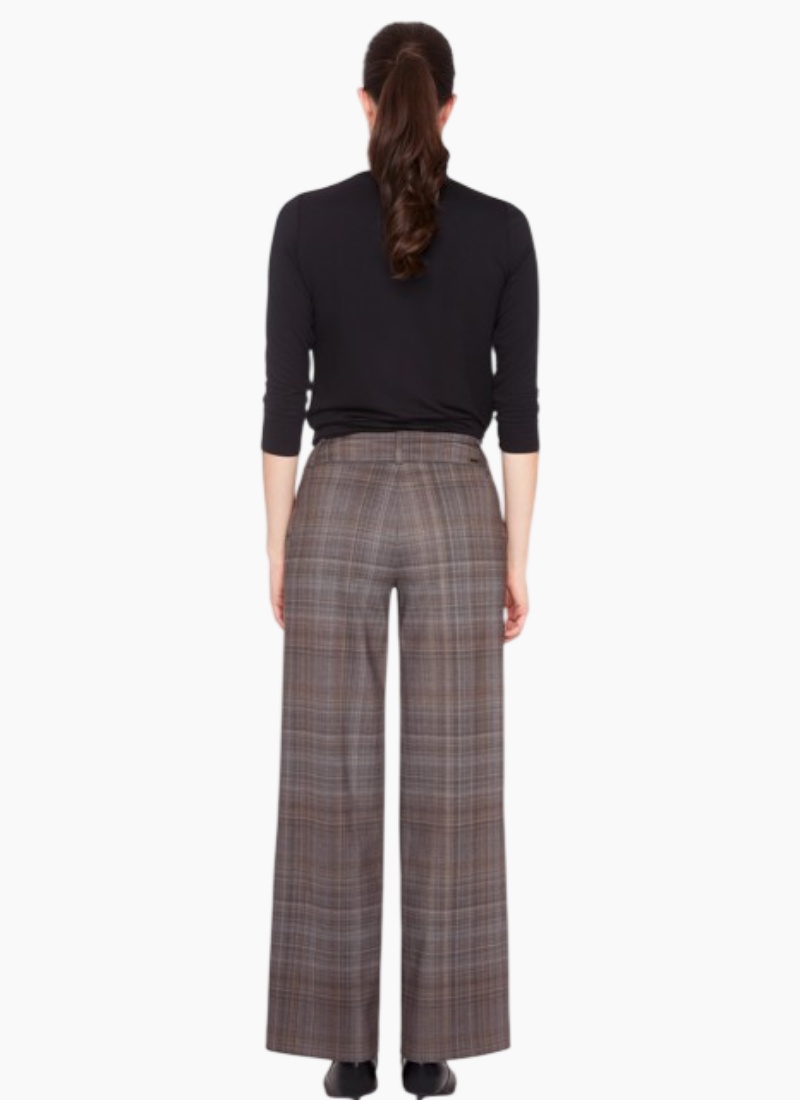Introducing the Printed Honey Plaid from Up! These tailored brown plaid trousers bring a refined, contemporary edge to your wardrobe.